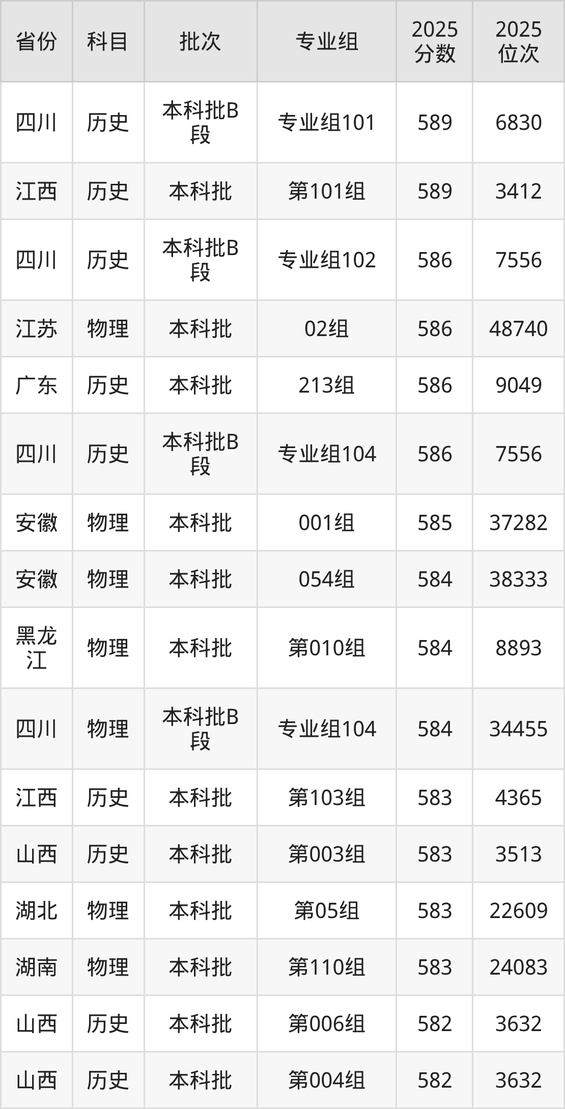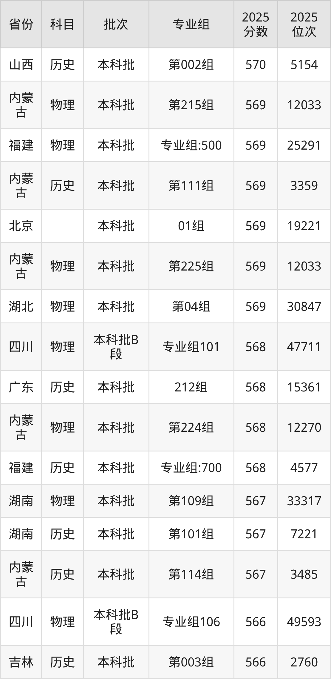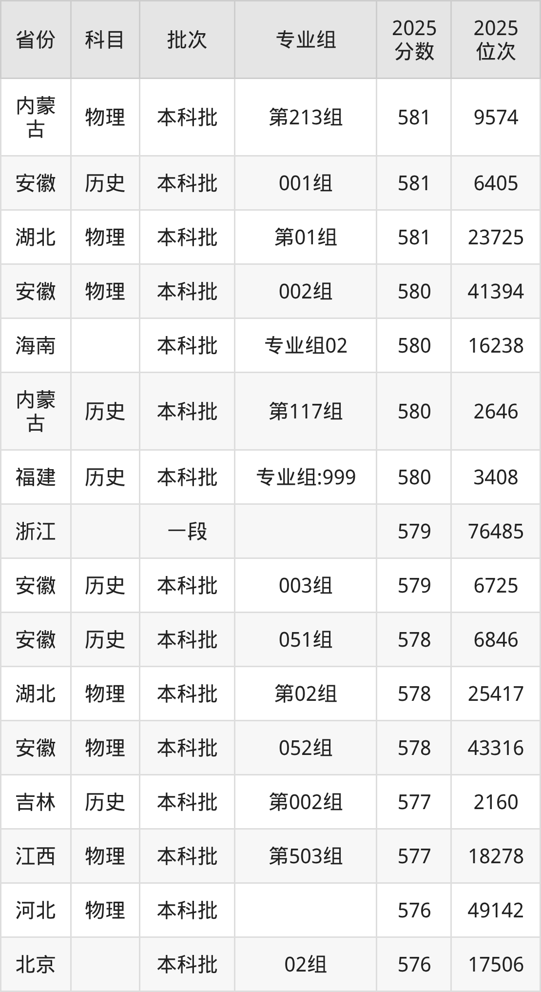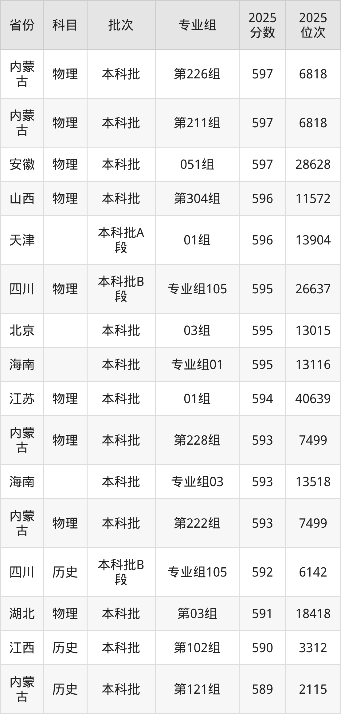 下面是2025年内蒙古大学在全国各省录取最低分数据及位次,各位考生也可作为一个参考。