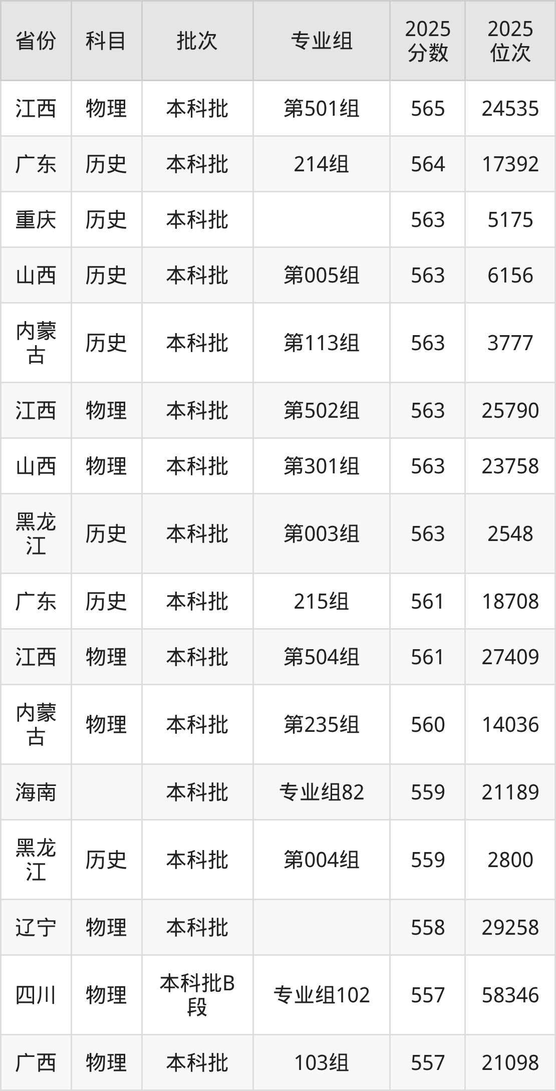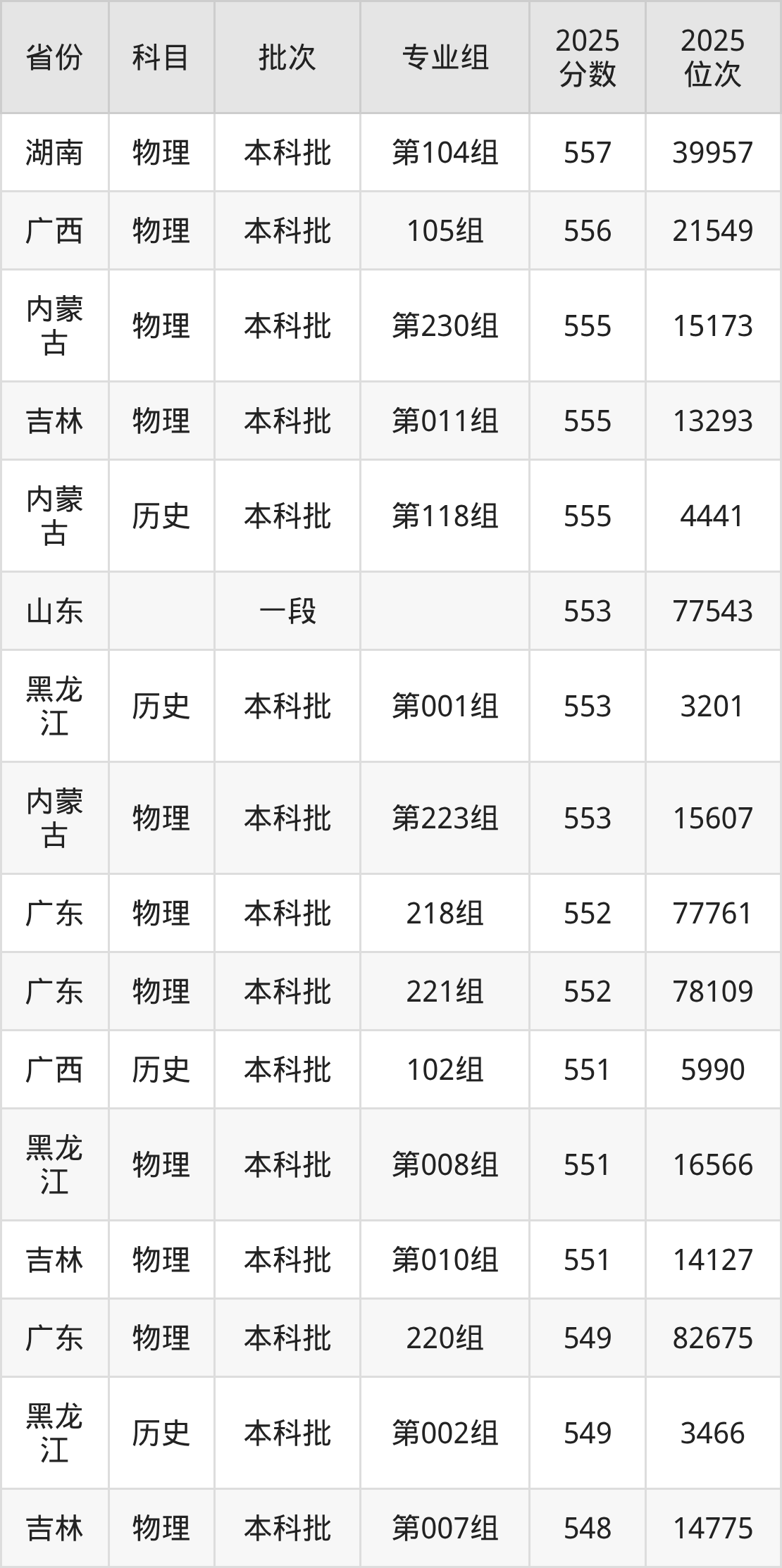 2025年内蒙古大学各专业录取分数线从553分到607分不等,录取分数线最低的专业是土木工程;录取分数线最高的专业是法学、纪检监察。本文将展示内蒙古大学所有专业最低分数线及位次,供2026届高考生参考。