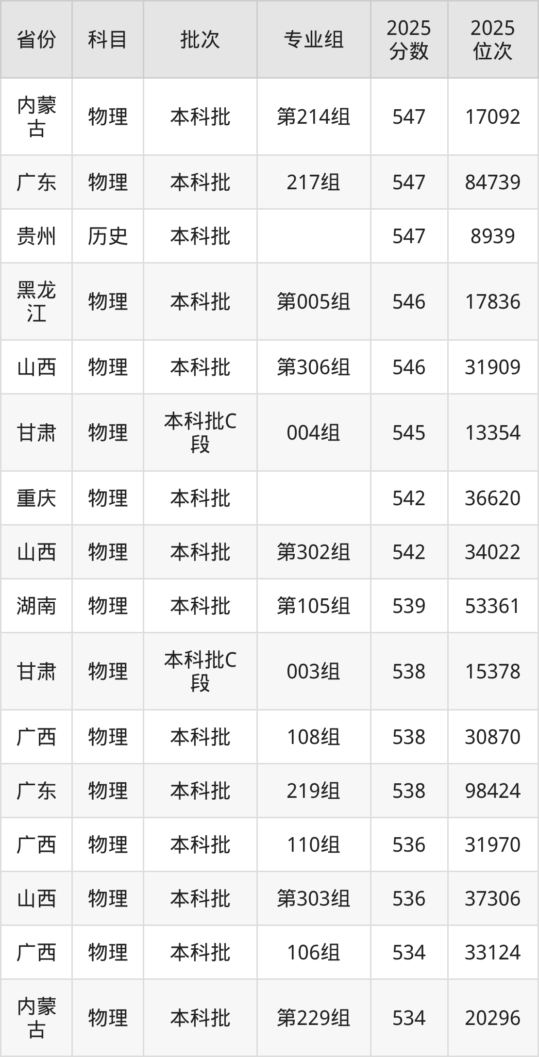 参考2025年山东省高考招录数据,按照分数线从高到低依次为大家展示内蒙古大学各个专业录取分数线。
