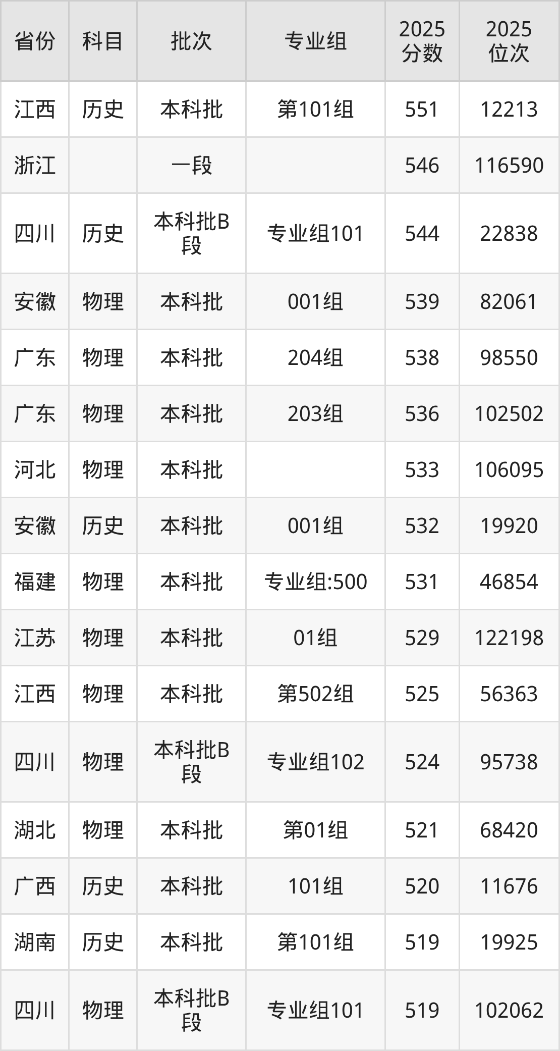 2025年温州理工学院全国录取分数线460分到551分,录取最高在江西(第101组)、录取最低在贵州(物理)。