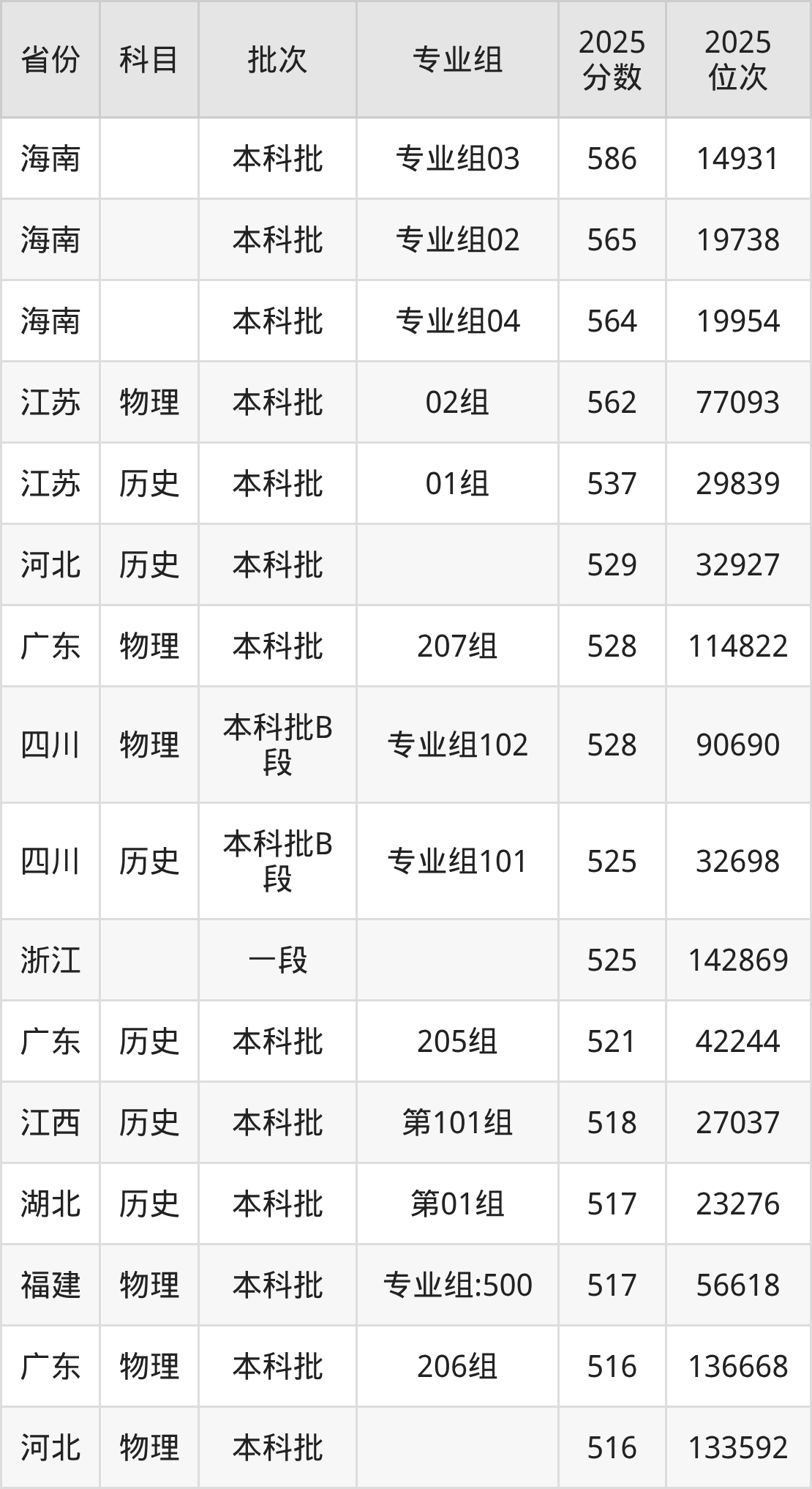 2025年桂林航天工业学院全国录取分数线419分到586分,录取最高在海南(专业组03)、录取最低在广西(350组(中外合作))。