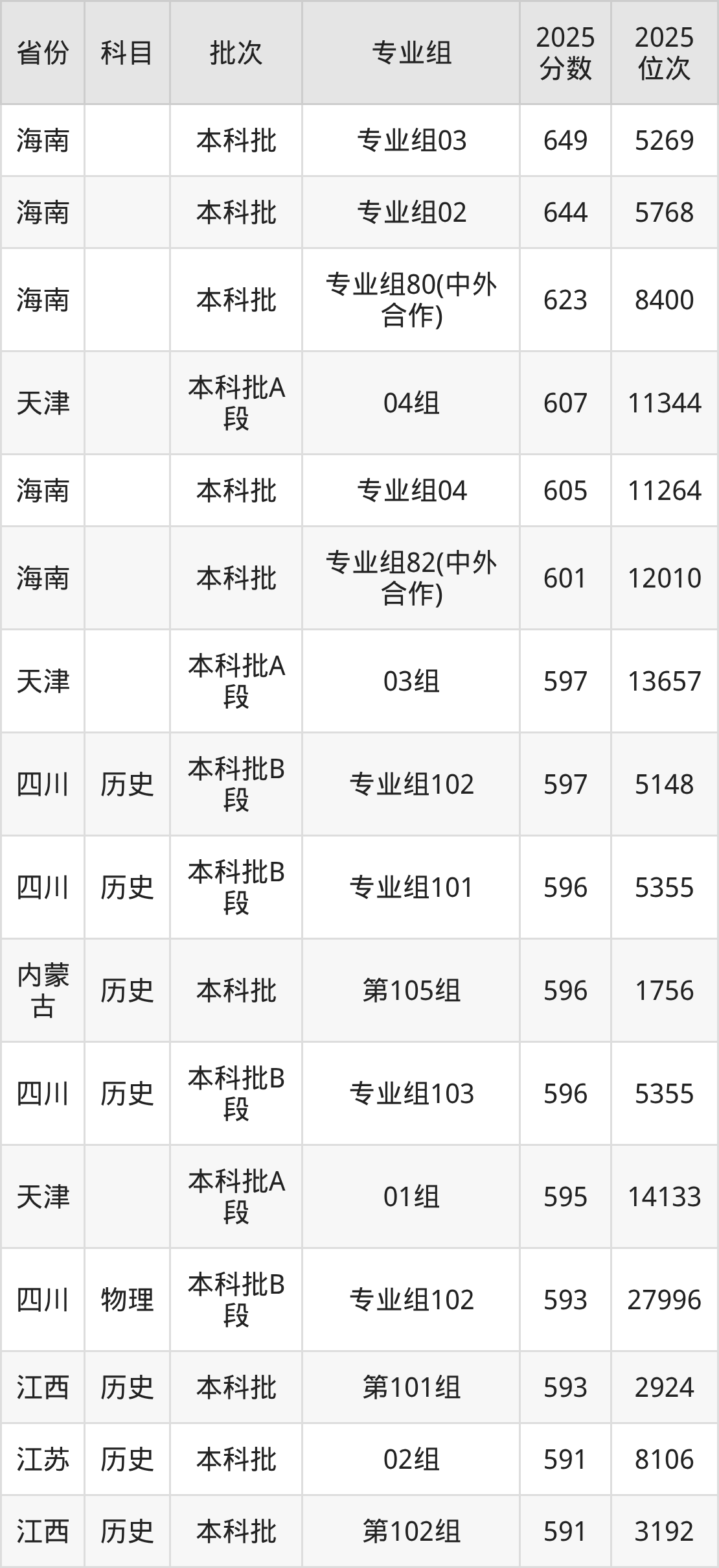 2025年江西财经大学全国录取分数线432分到649分,录取最高在海南(专业组03)、录取最低在湖南(第211组(中外合作))。