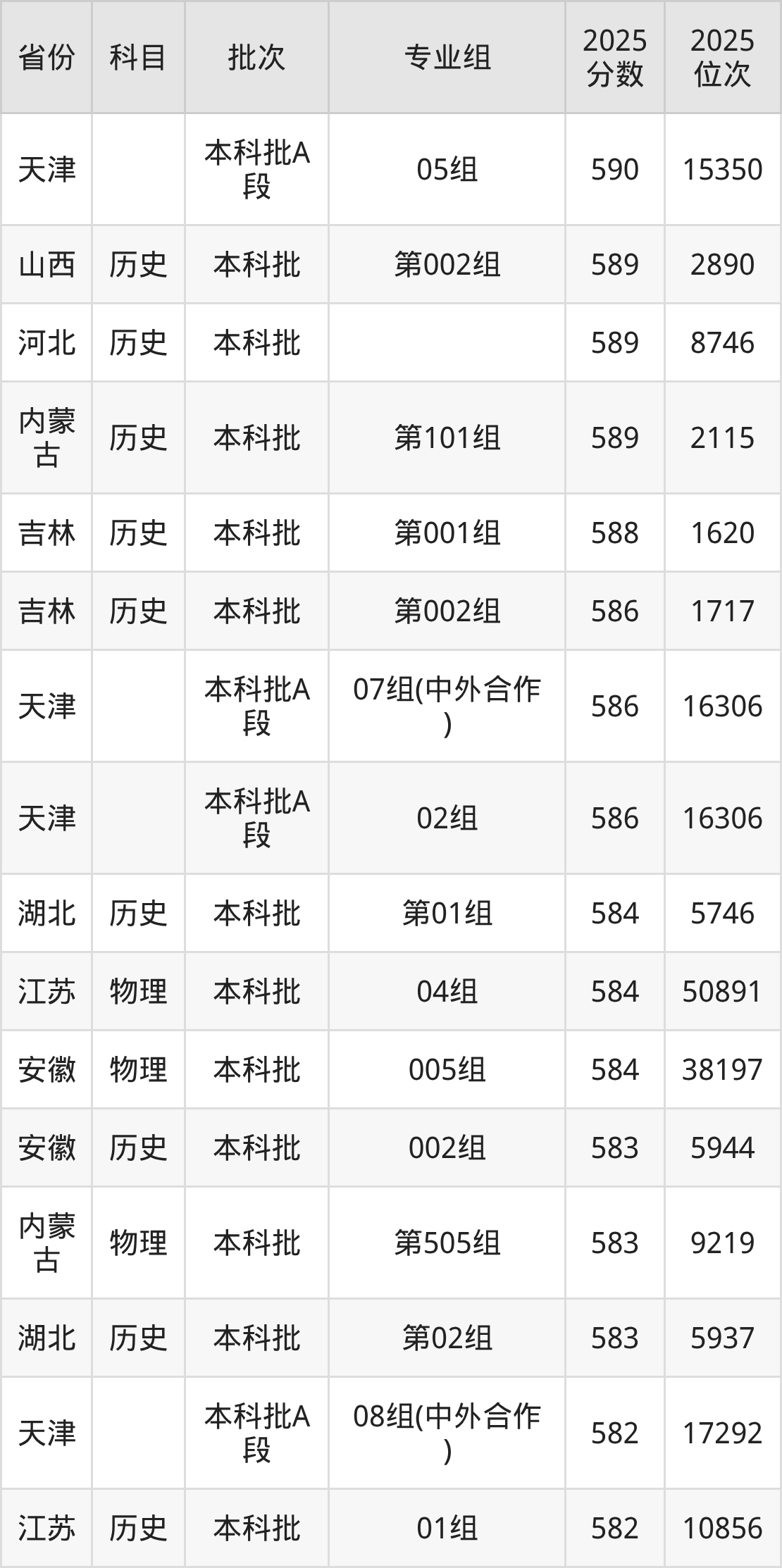16、金融学(CFA方向)(特许金融分析师):589分、位次33693名;