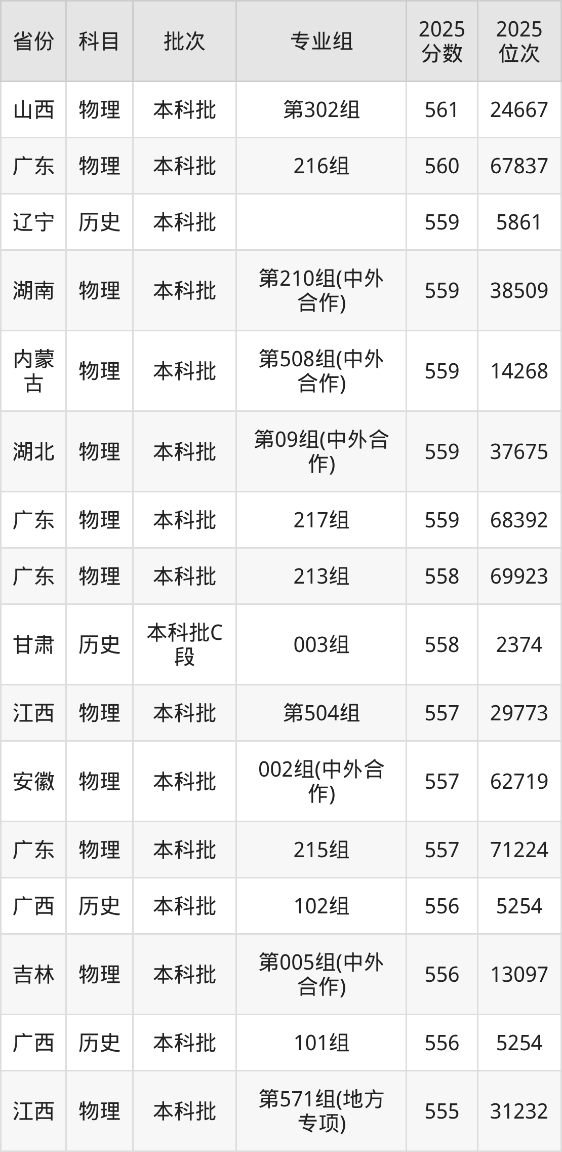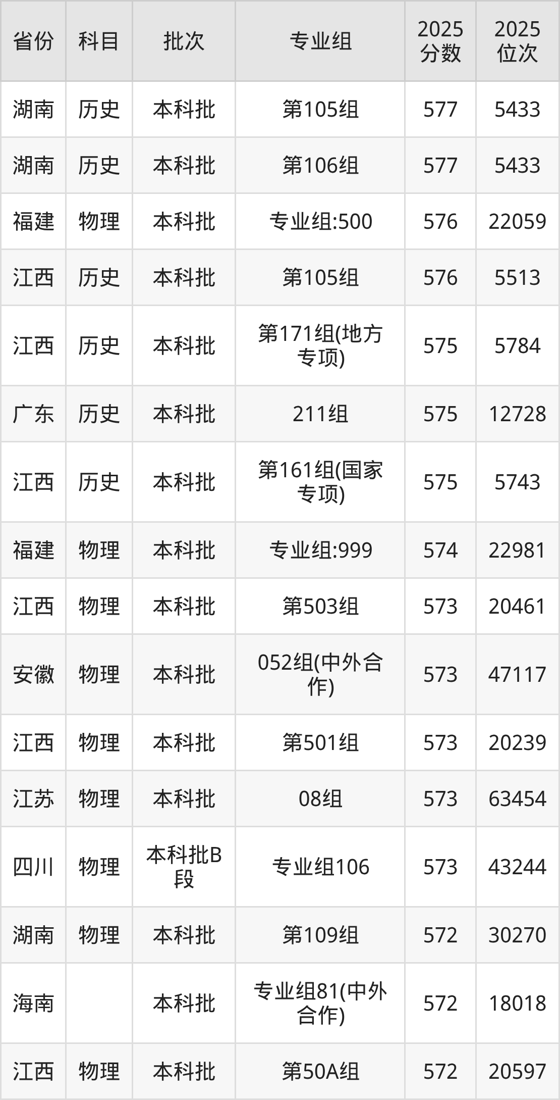 三、江西财经大学2025年录取分数线