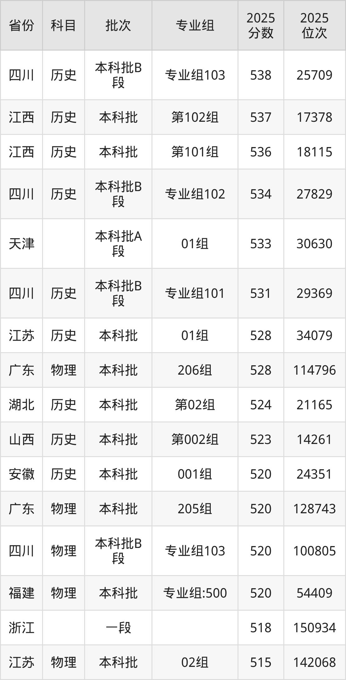 3、自动化:523分、位次134265名;