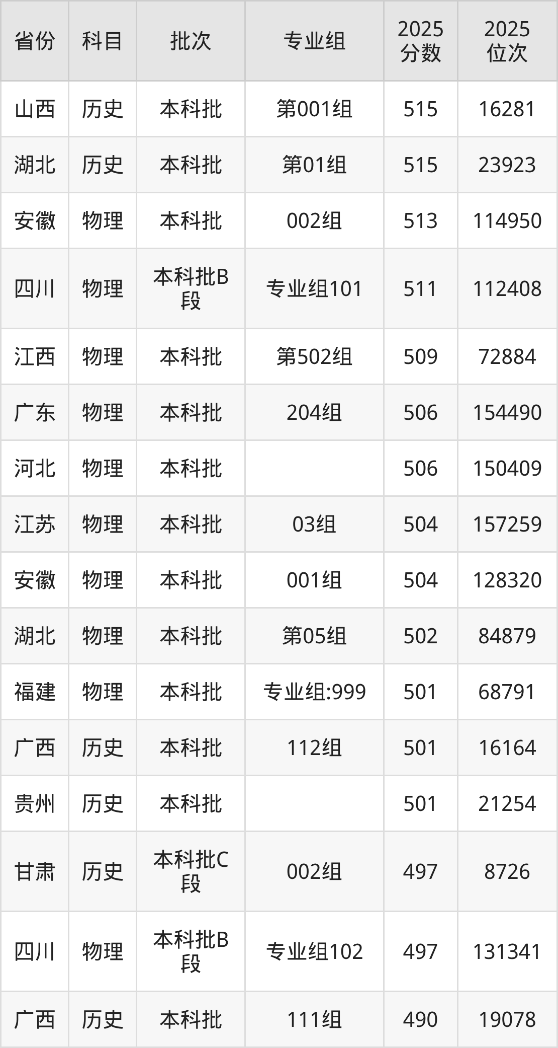 下面是2025年湖北工程学院在全国各省录取最低分数据及位次,各位考生也可作为一个参考。