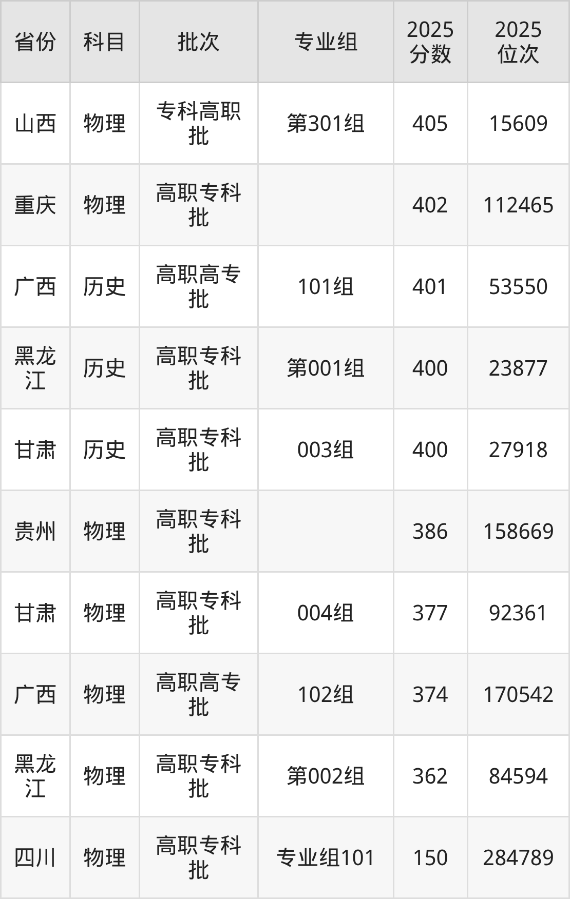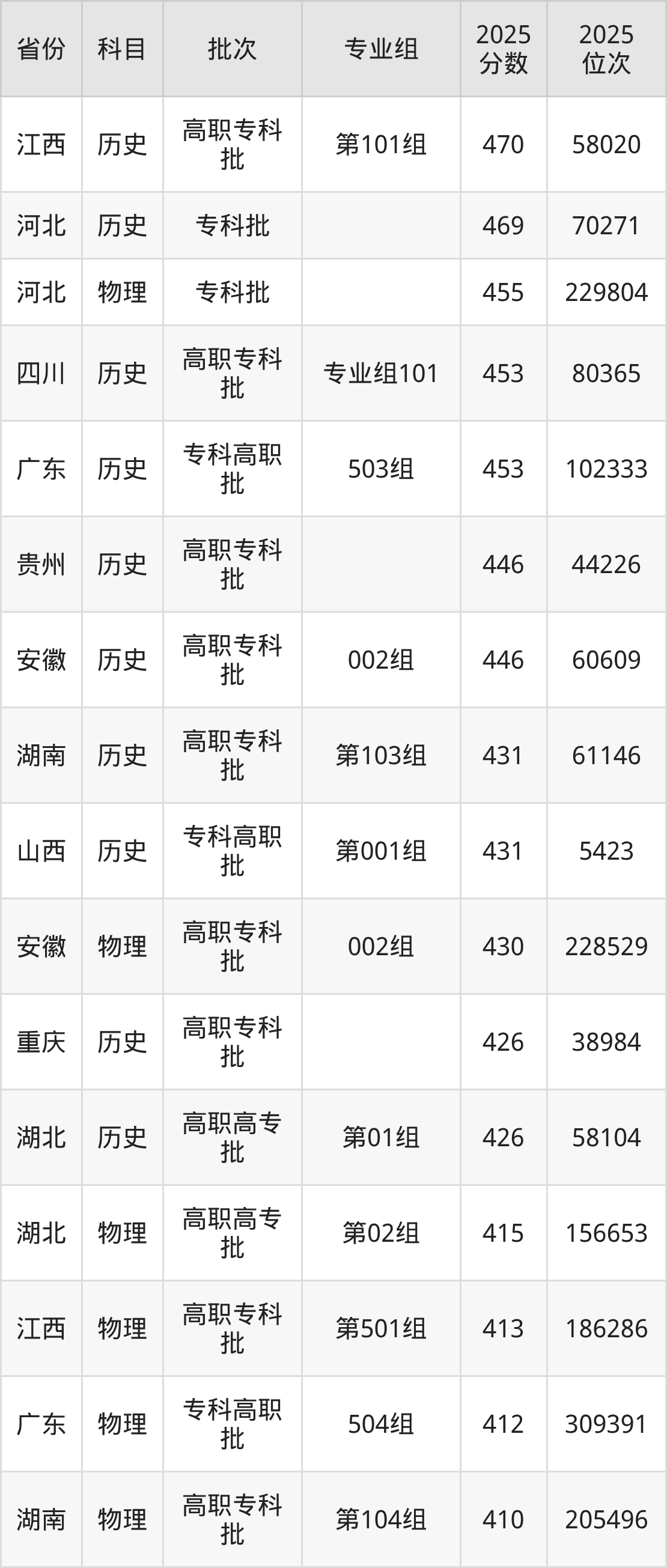 2025年河南医学高等专科学校全国录取分数线150分到470分,录取最高在江西(第101组)、录取最低在四川(专业组101)。