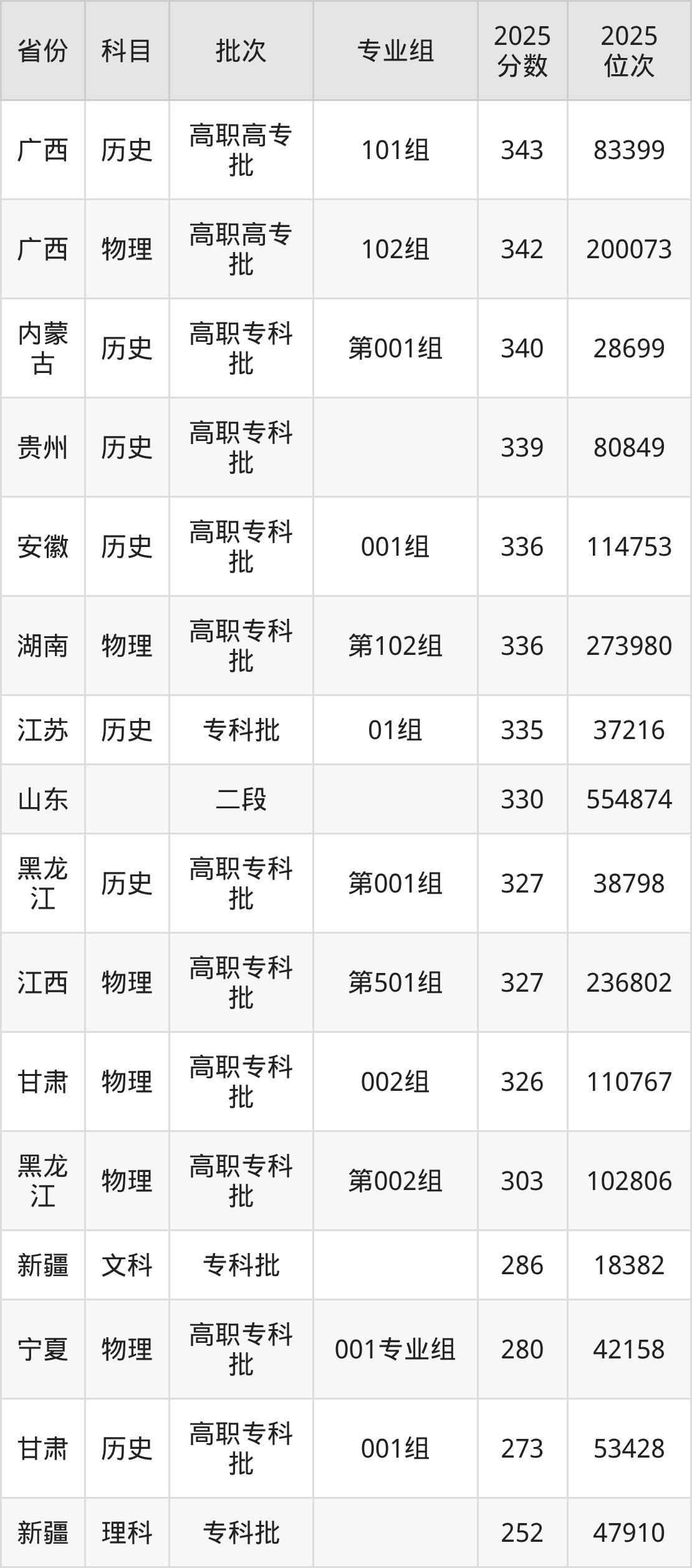 下面是2025年济源职业技术学院在全国各省录取最低分数据及位次,各位考生也可作为一个参考。