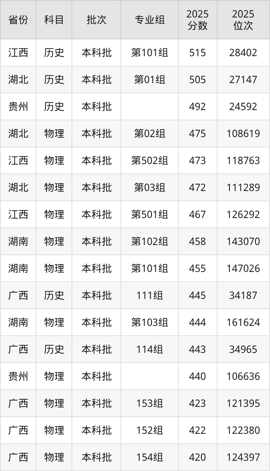 下面是2025年广西职业师范学院在全国各省录取最低分数据及位次,各位考生也可作为一个参考。