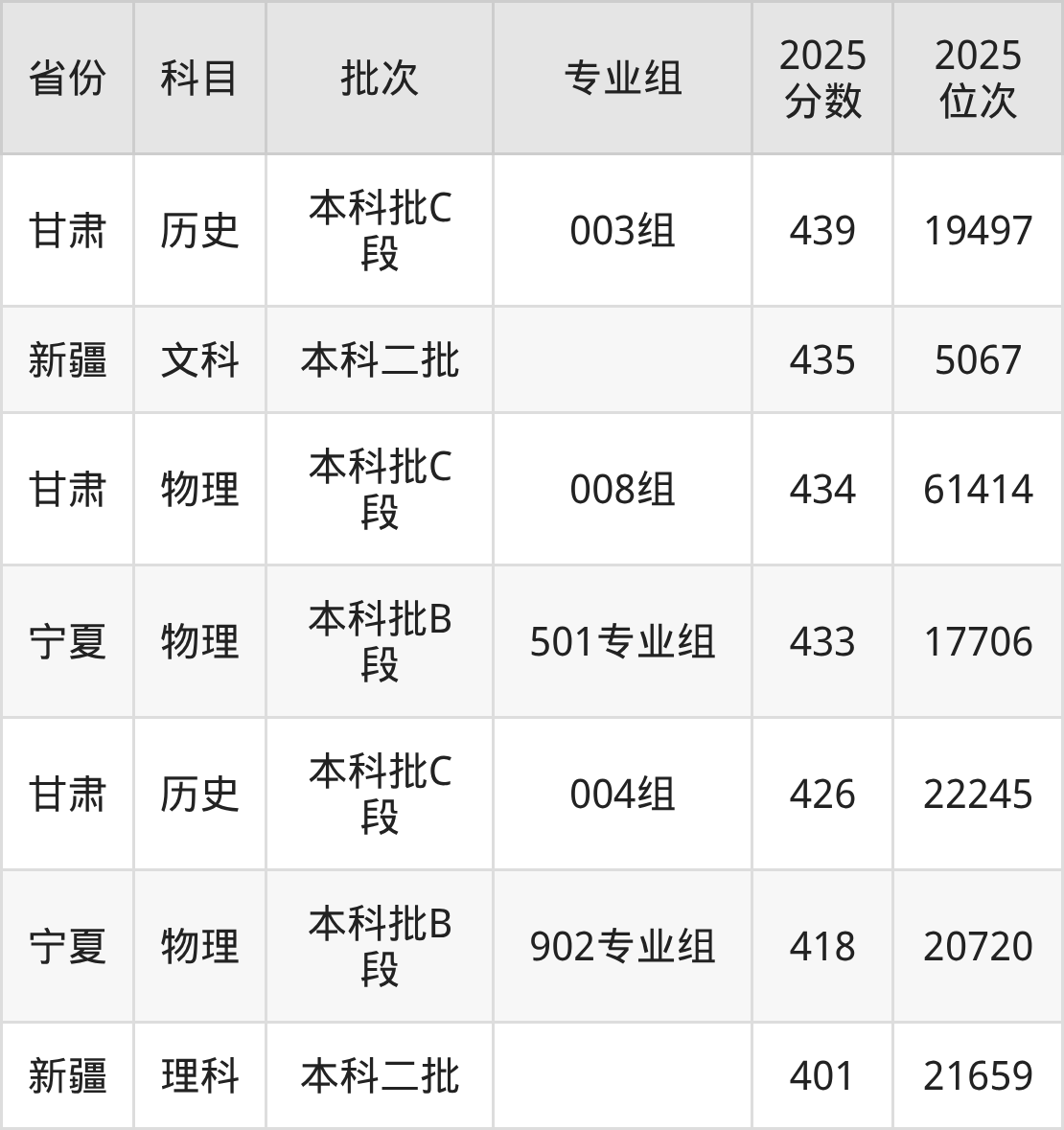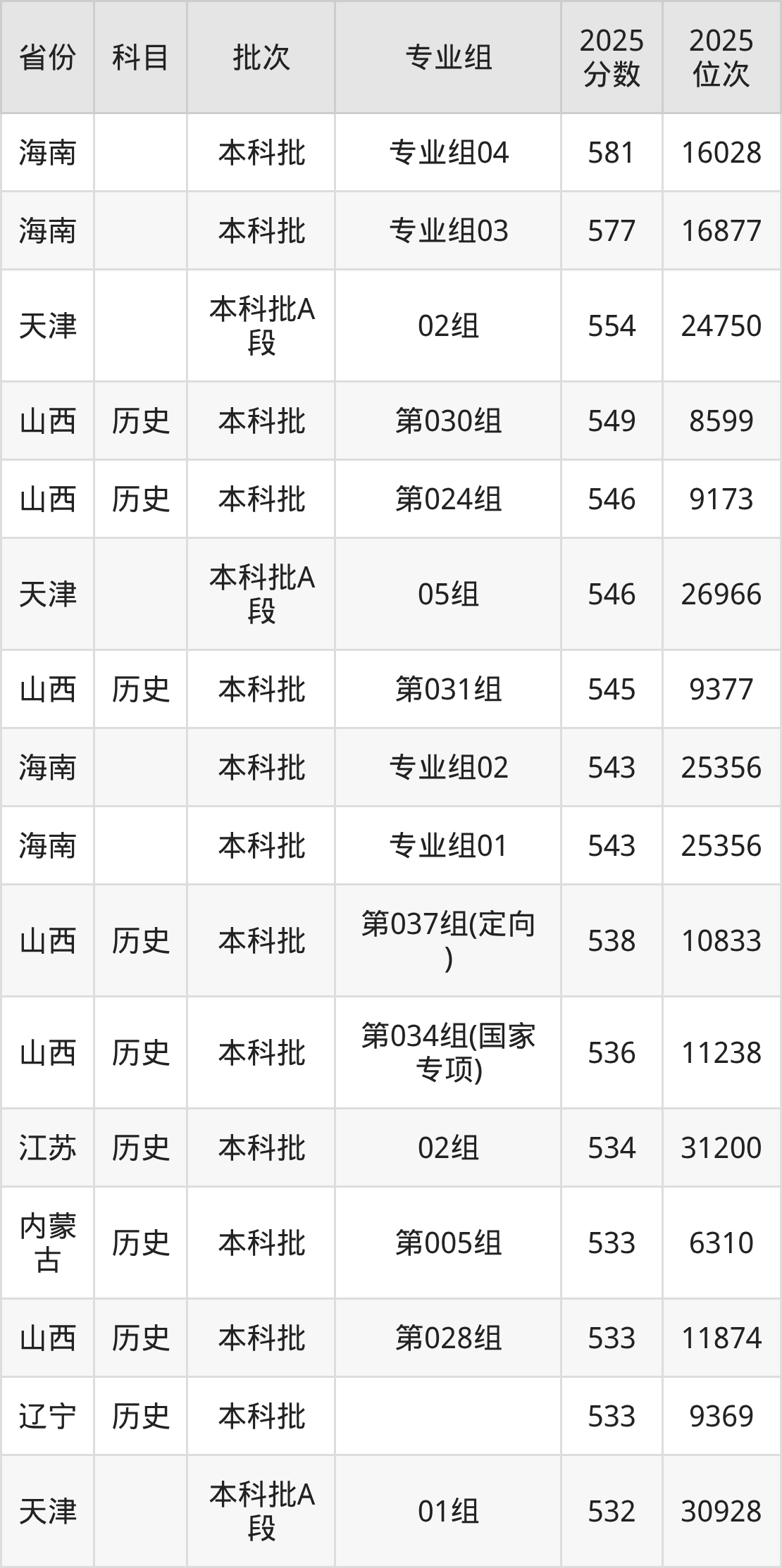 2025年太原师范学院全国录取分数线401分到581分,录取最高在海南(专业组04)、录取最低在新疆(理科)。