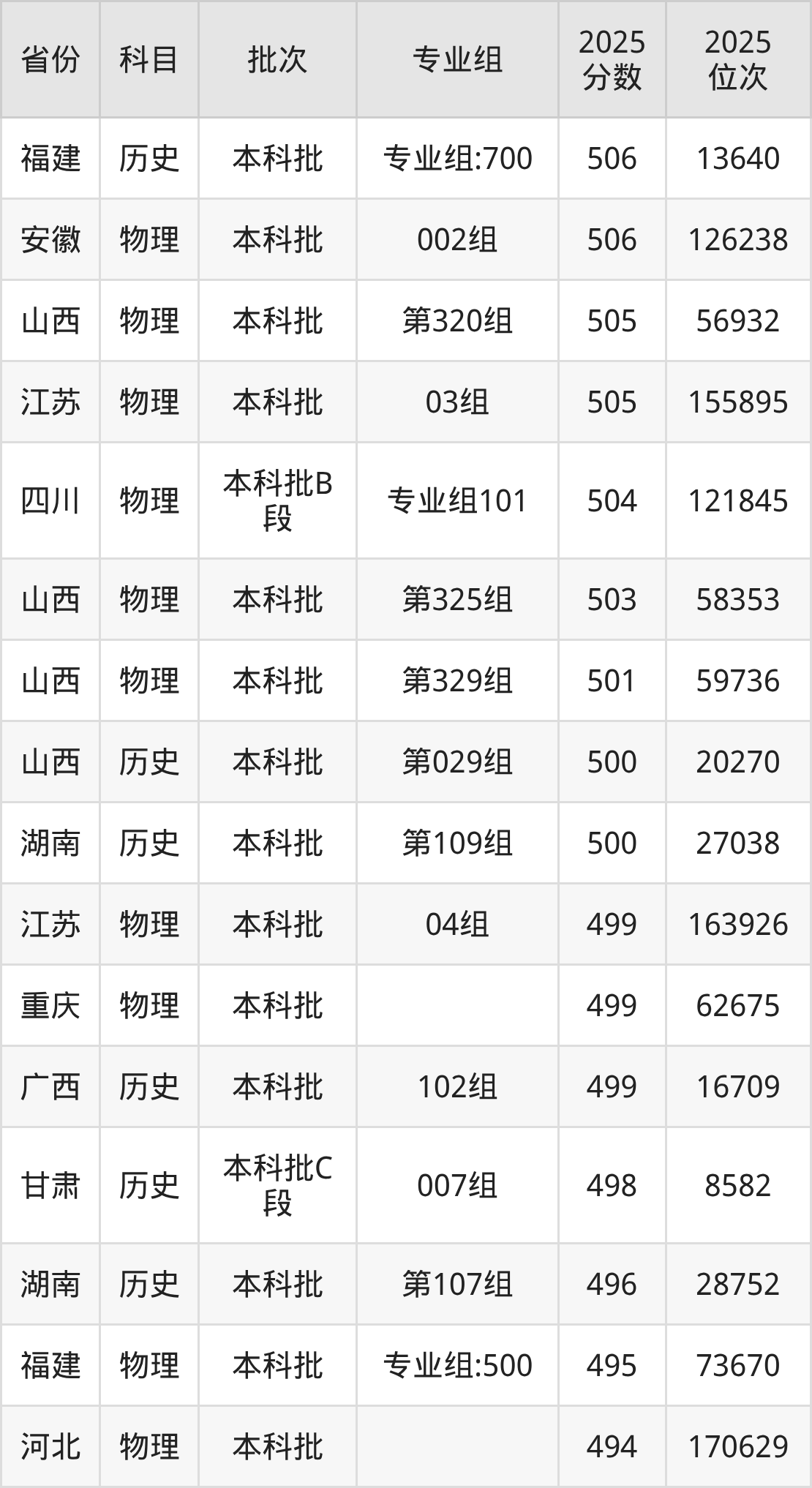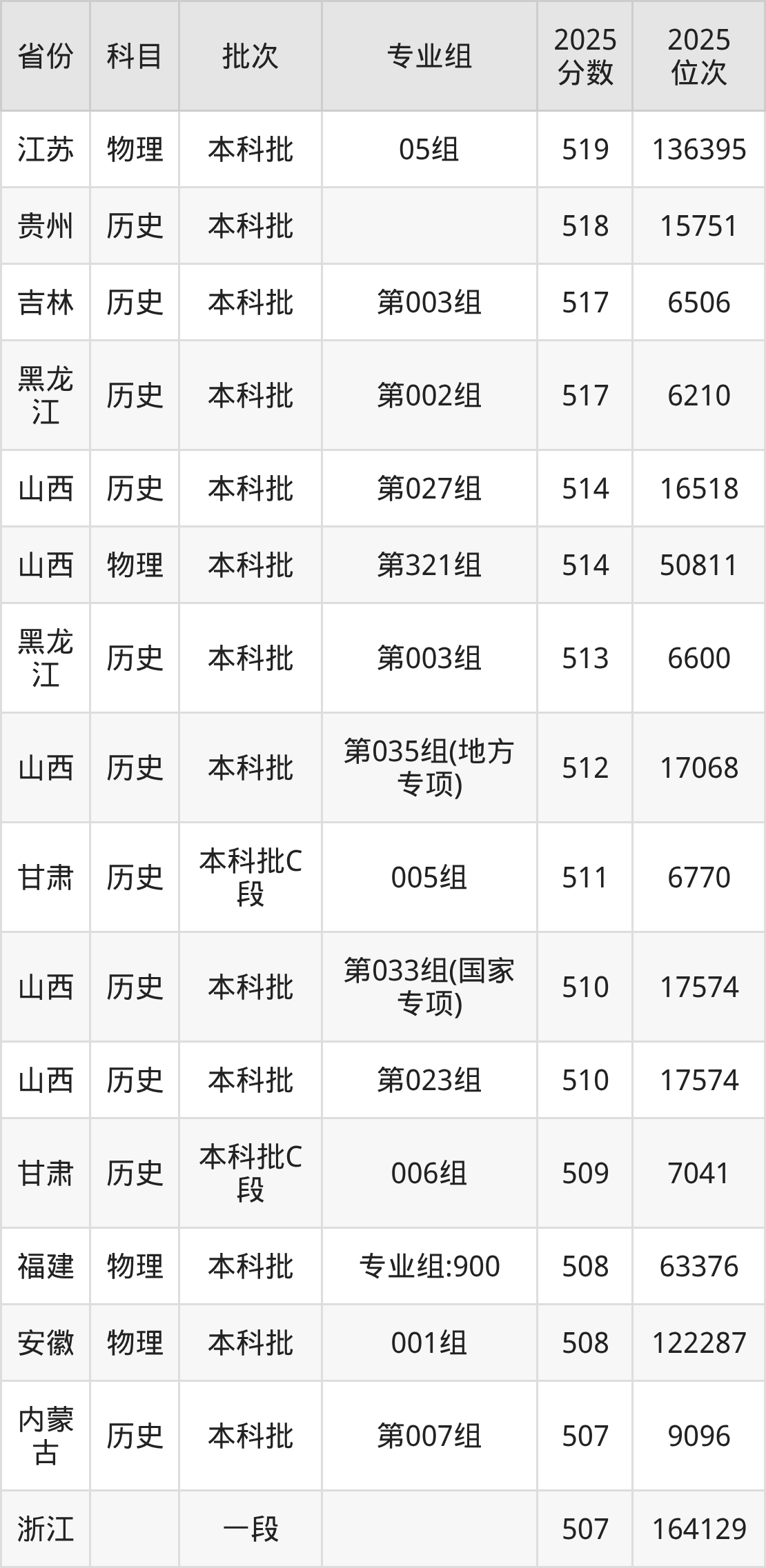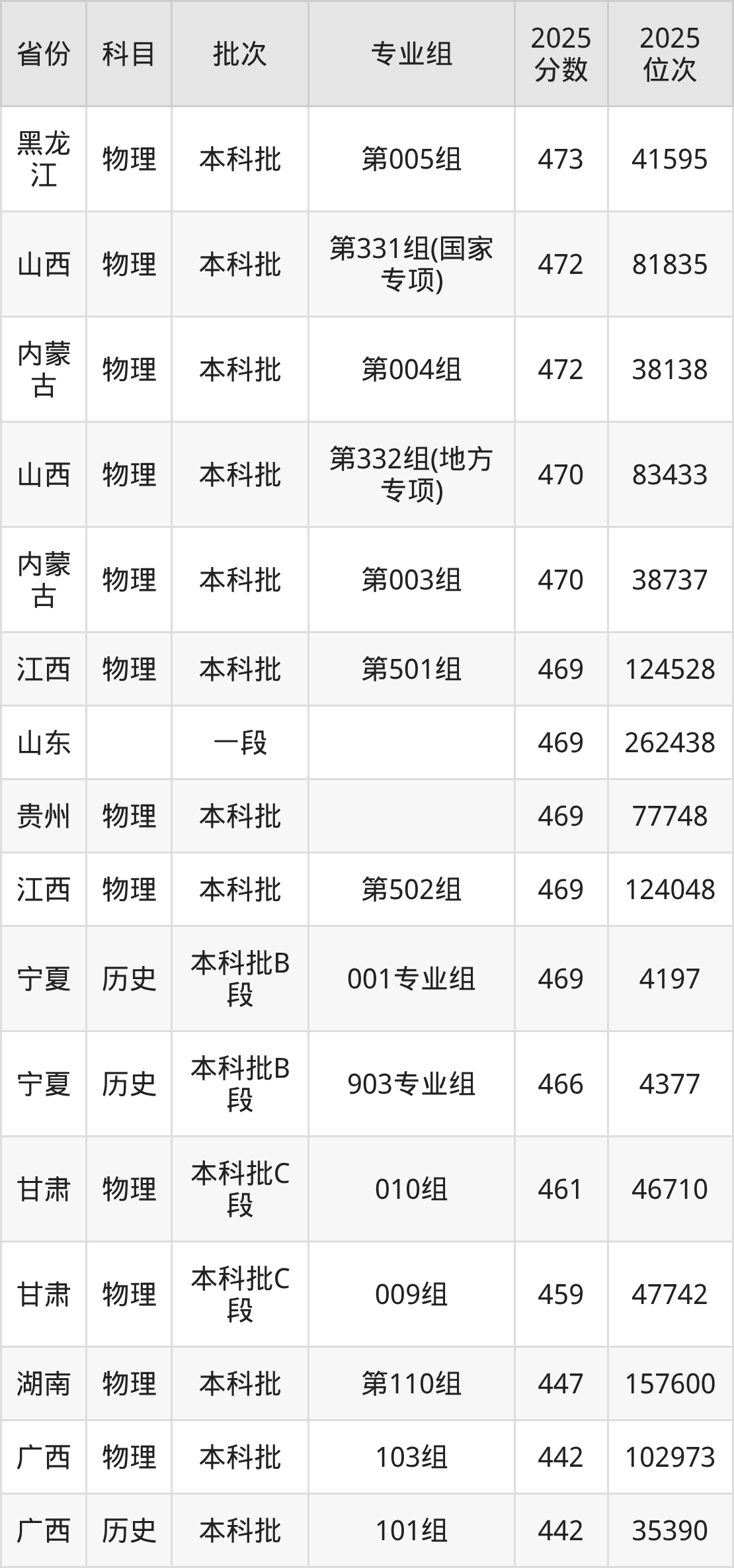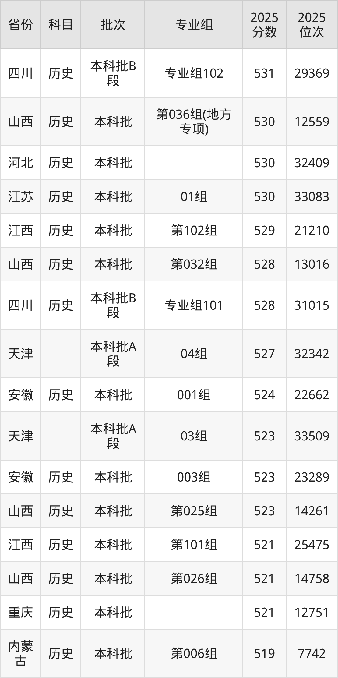 参考2025年山东省高考招录数据,按照分数线从高到低依次为大家展示太原师范学院各个专业录取分数线。