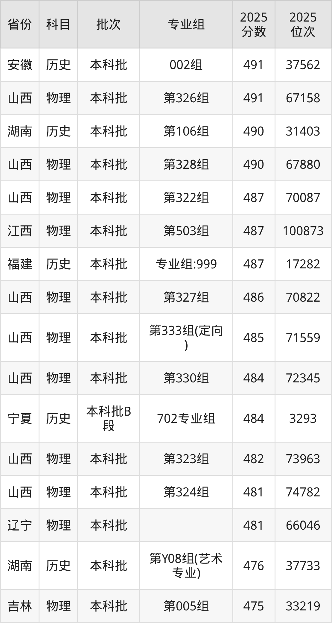 下面是2025年太原师范学院在全国各省录取最低分数据及位次,各位考生也可作为一个参考。