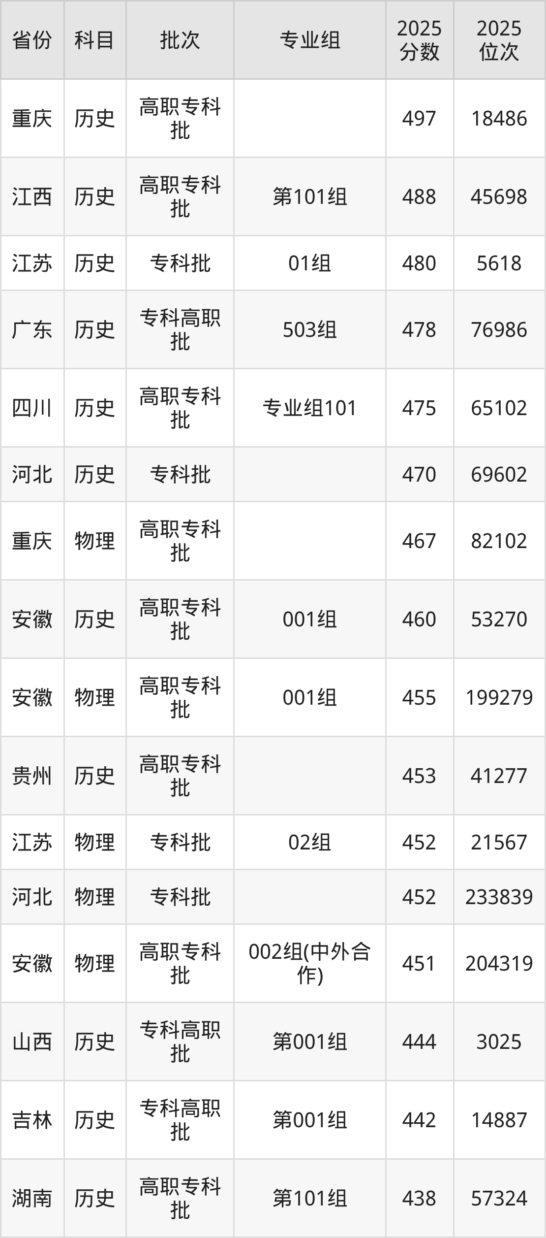 2025年陕西铁路工程职业技术学院各专业录取分数线从431分到479分不等,录取分数线最低的专业是给排水工程技术;录取分数线最高的专业是铁道机车运用与维护。本文将展示陕西铁路工程职业技术学院所有专业最低分数线及位次,供2026届高考生参考。