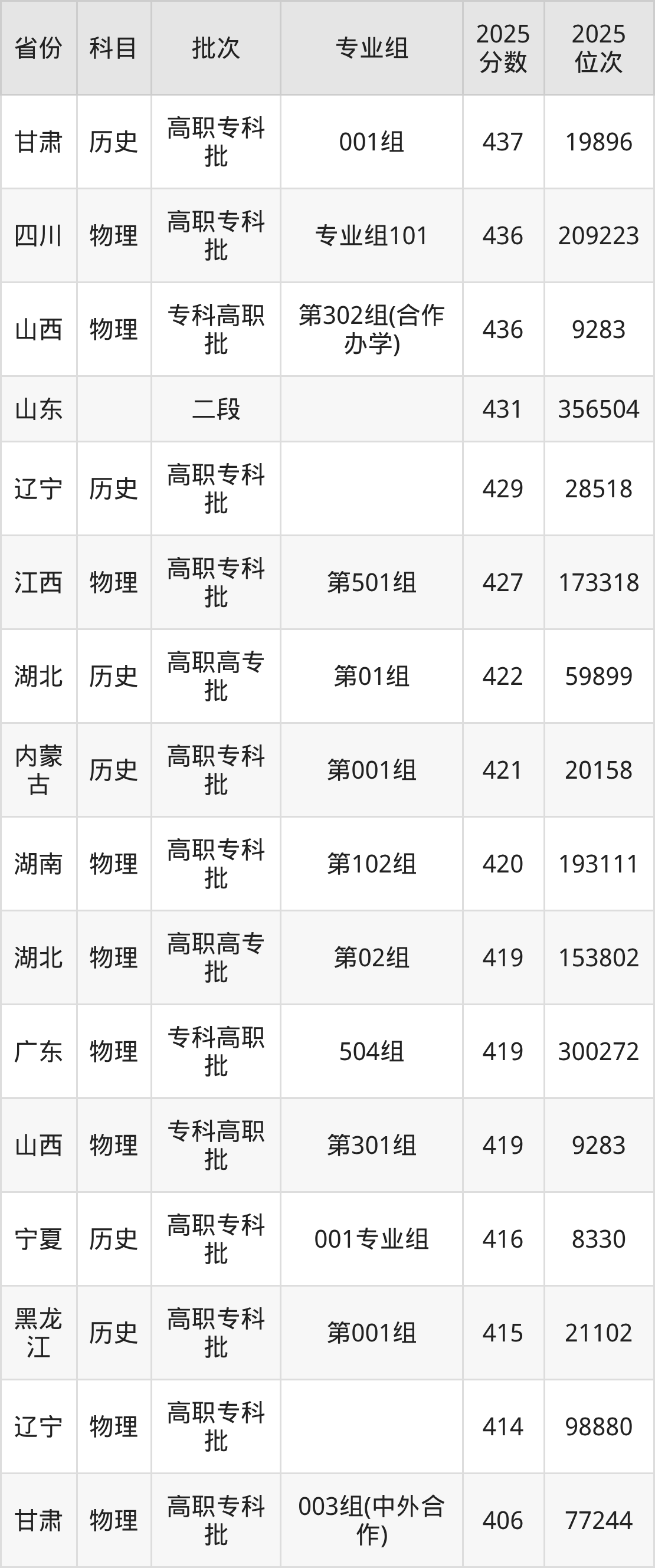 参考2025年山东省高考招录数据,按照分数线从高到低依次为大家展示陕西铁路工程职业技术学院各个专业录取分数线。