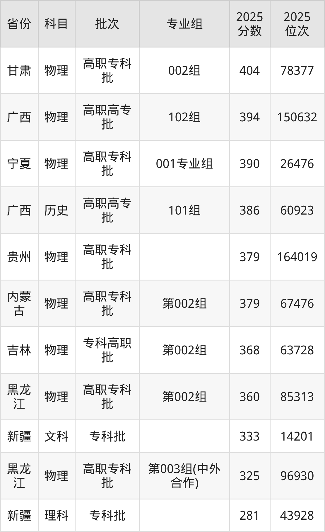 下面是2025年陕西铁路工程职业技术学院在全国各省录取最低分数据及位次,各位考生也可作为一个参考。