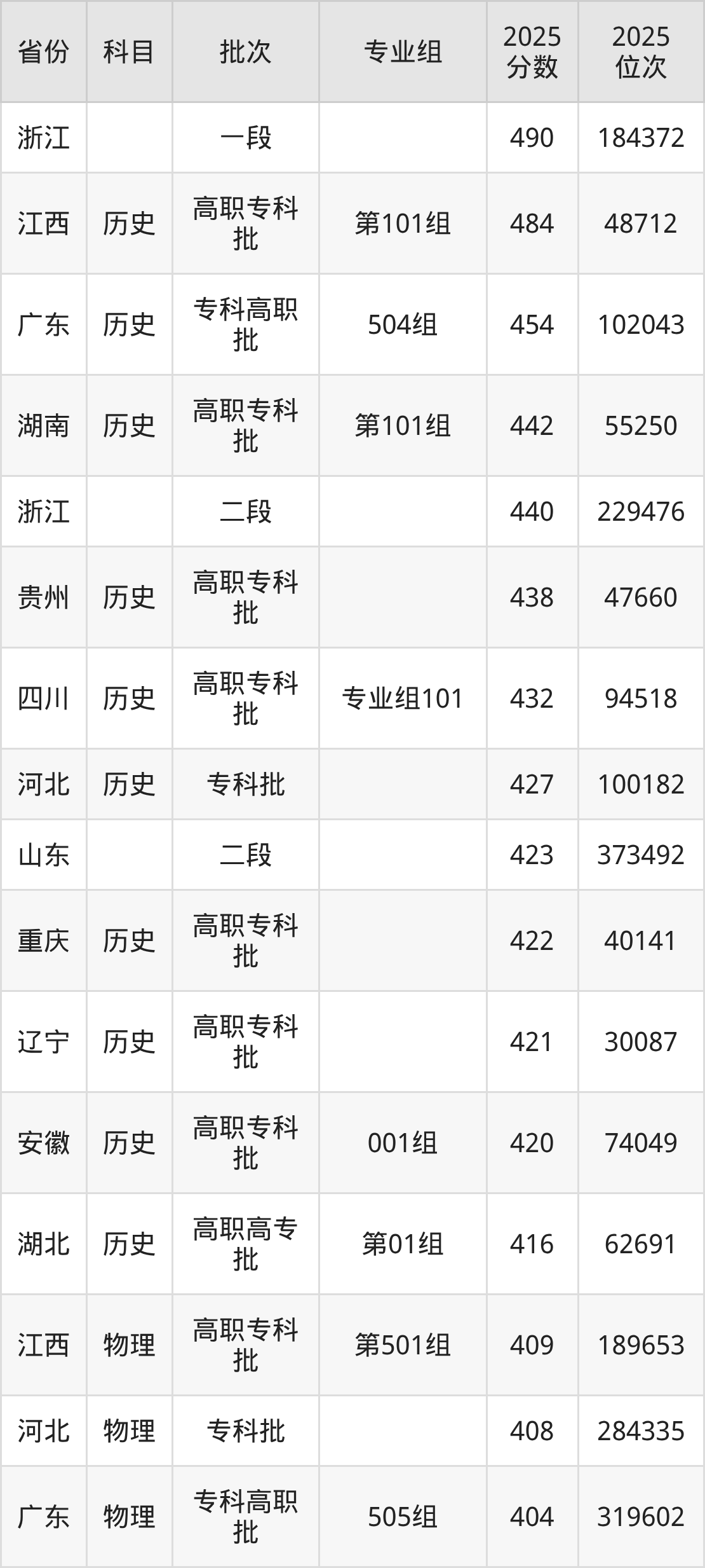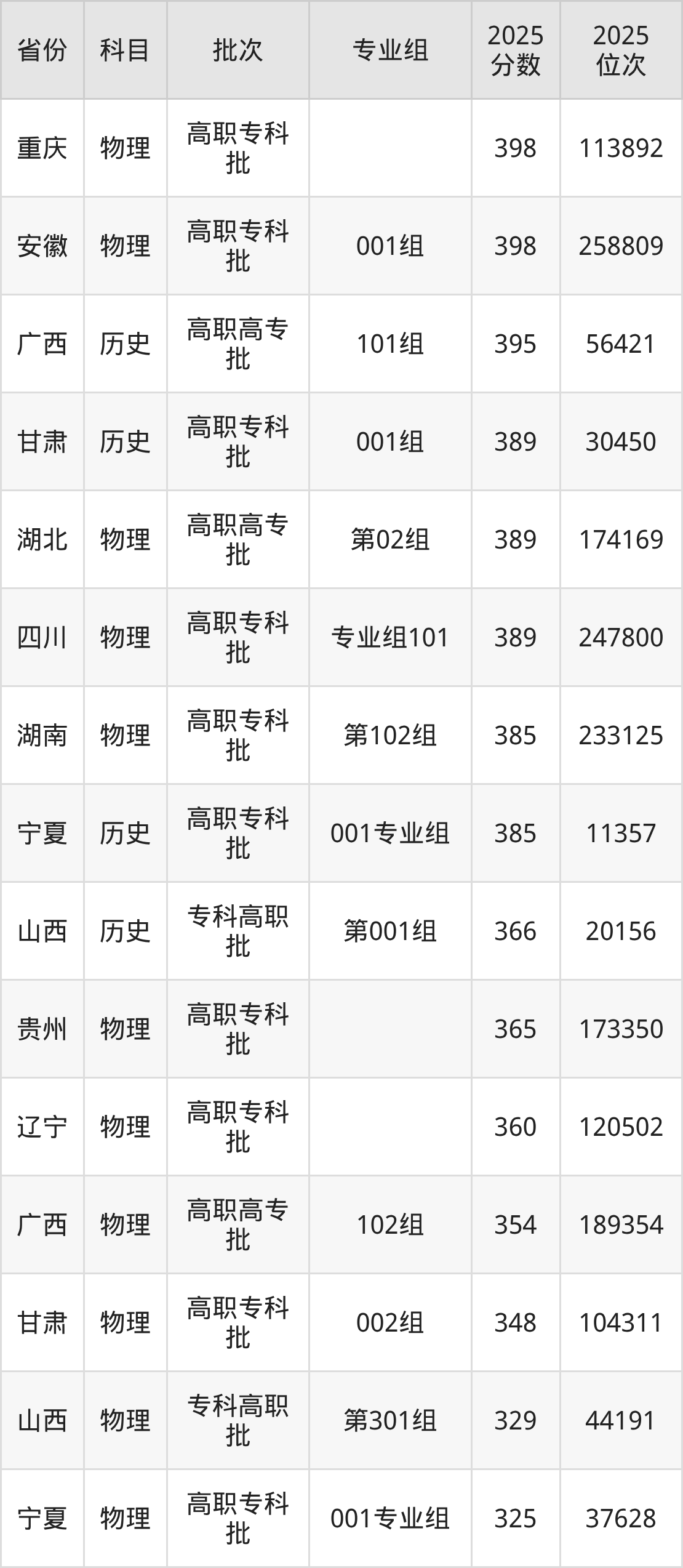 下面是2025年厦门城市职业学院在全国各省录取最低分数据及位次,各位考生也可作为一个参考。