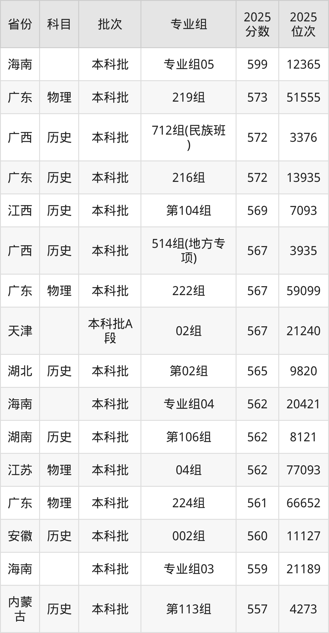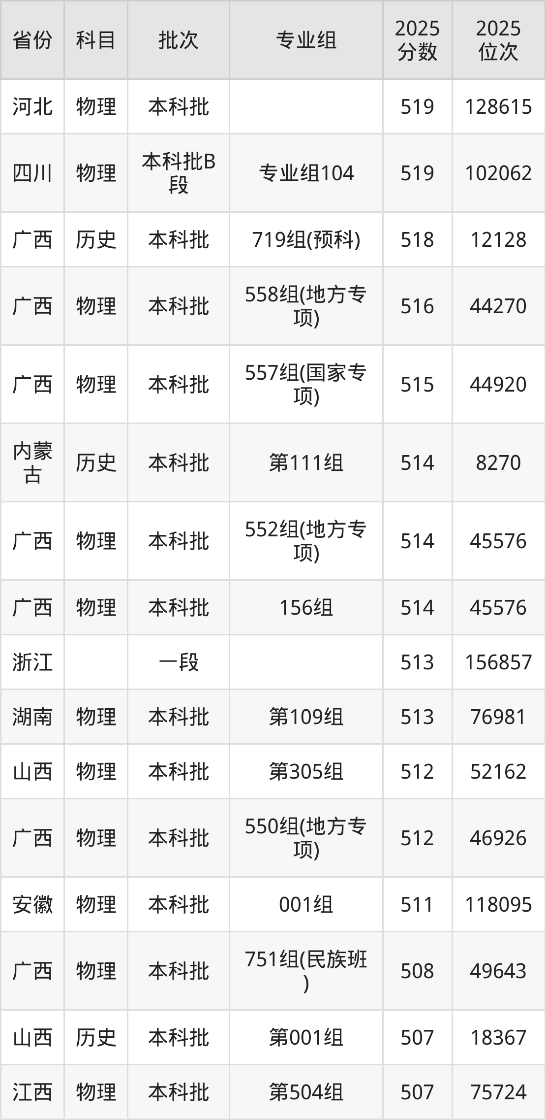 下面是2025年广西师范大学在全国各省录取最低分数据及位次,各位考生也可作为一个参考。