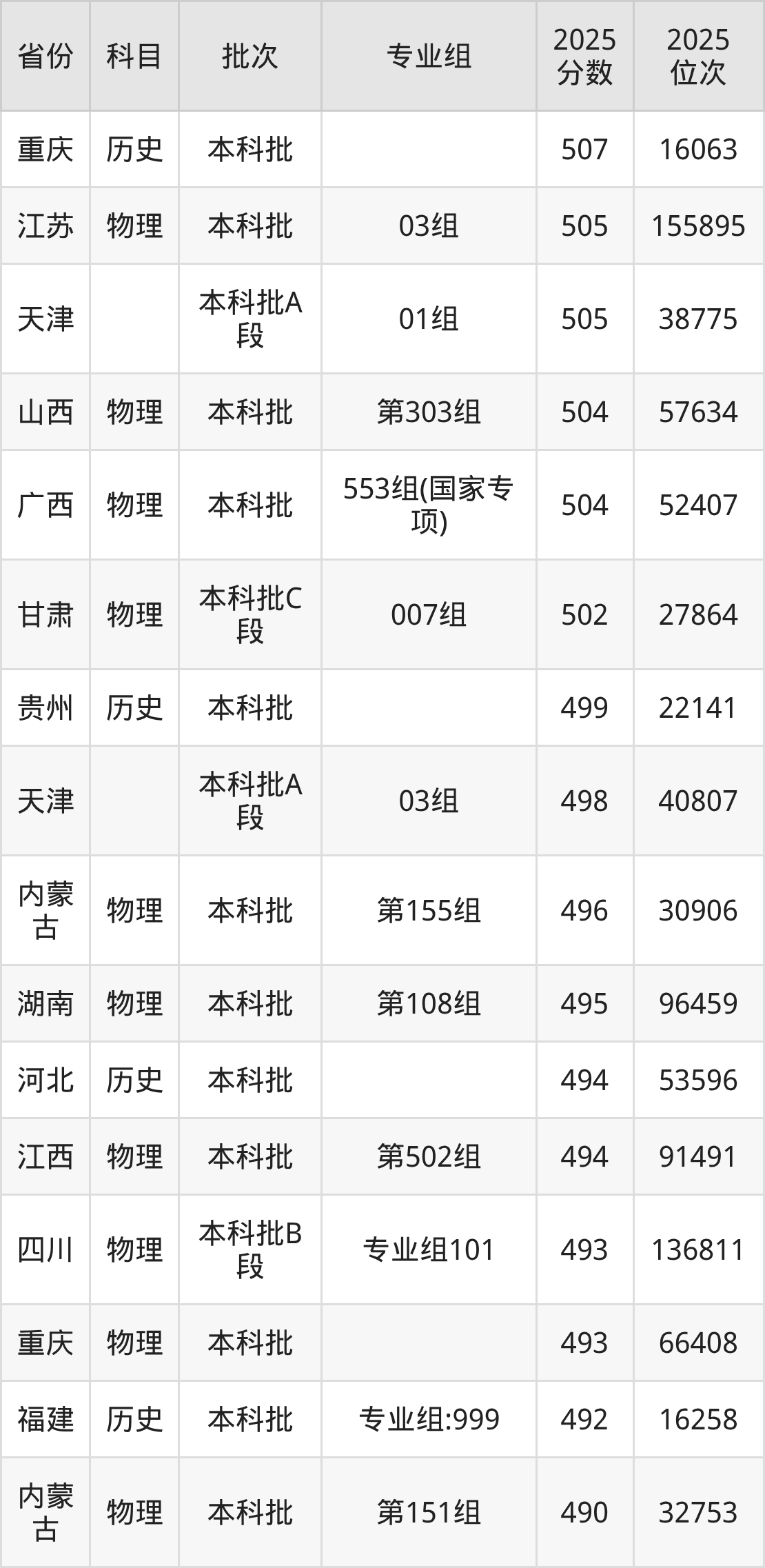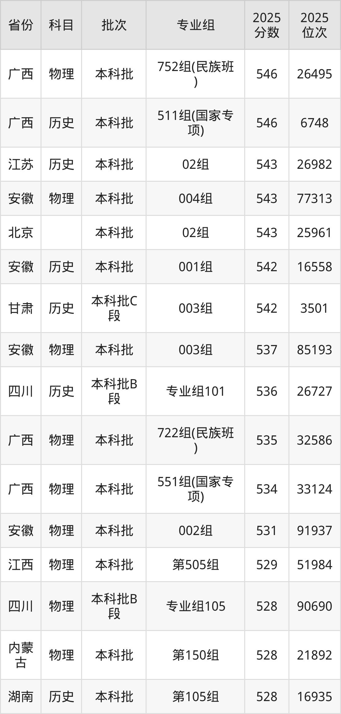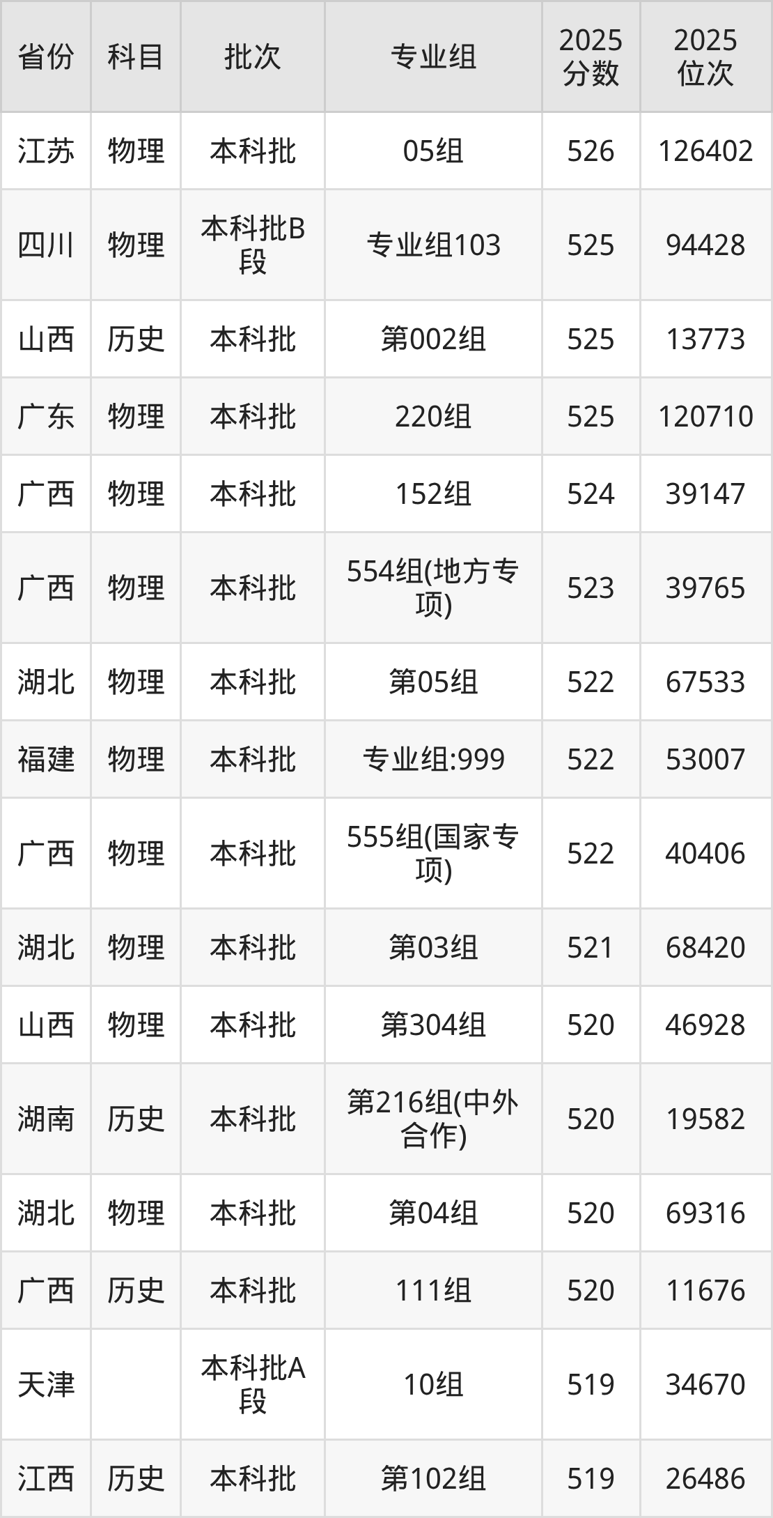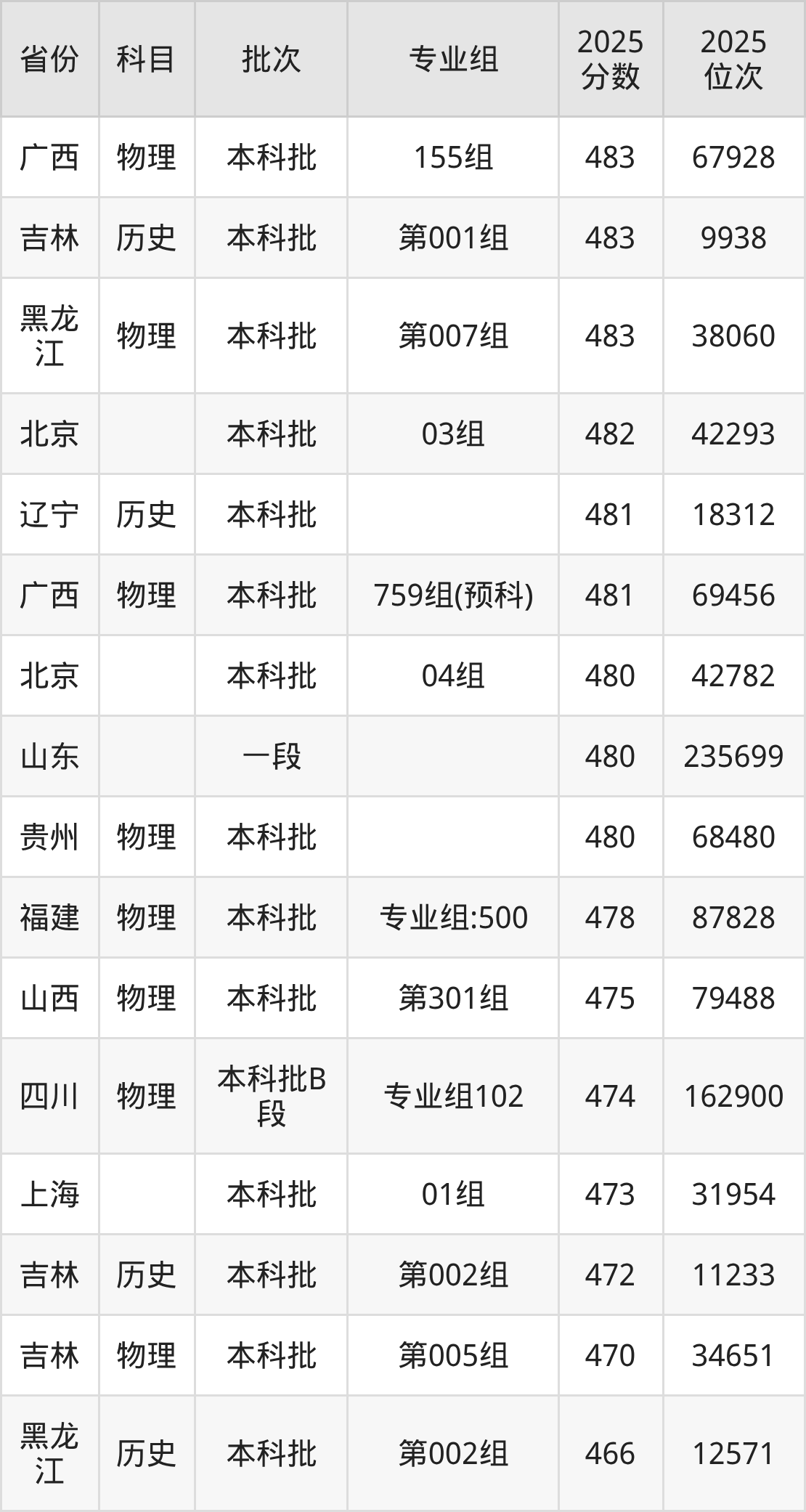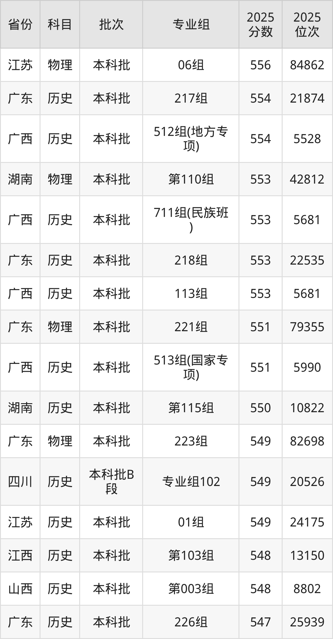 参考2025年山东省高考招录数据,按照分数线从高到低依次为大家展示广西师范大学各个专业录取分数线。