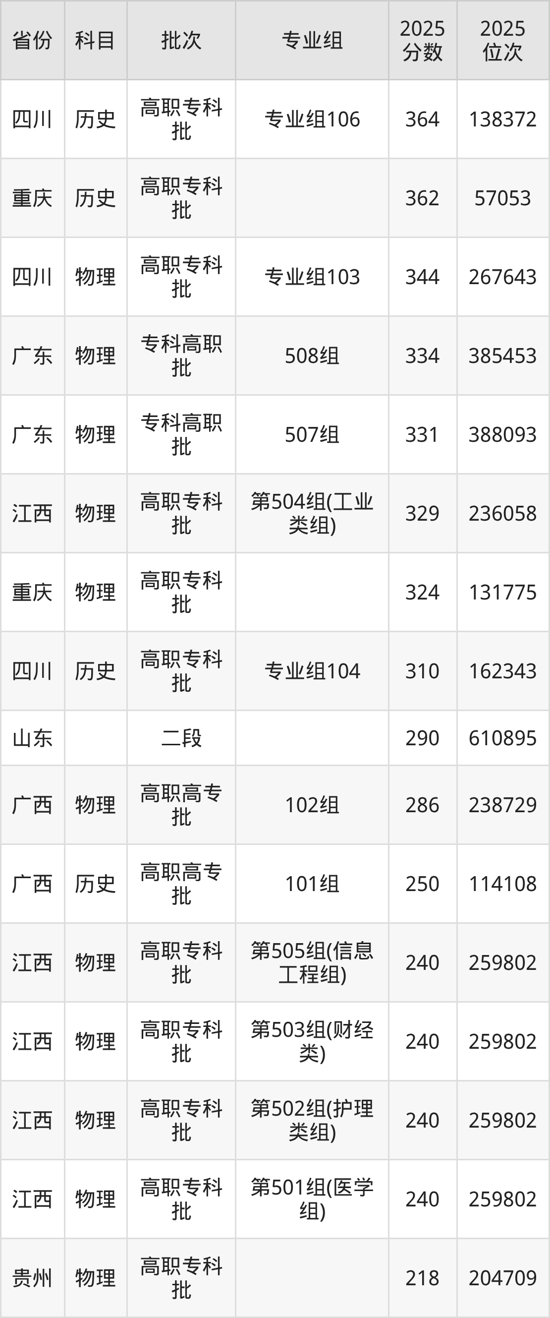 下面是2025年六盘水职业技术学院在全国各省录取最低分数据及位次,各位考生也可作为一个参考。