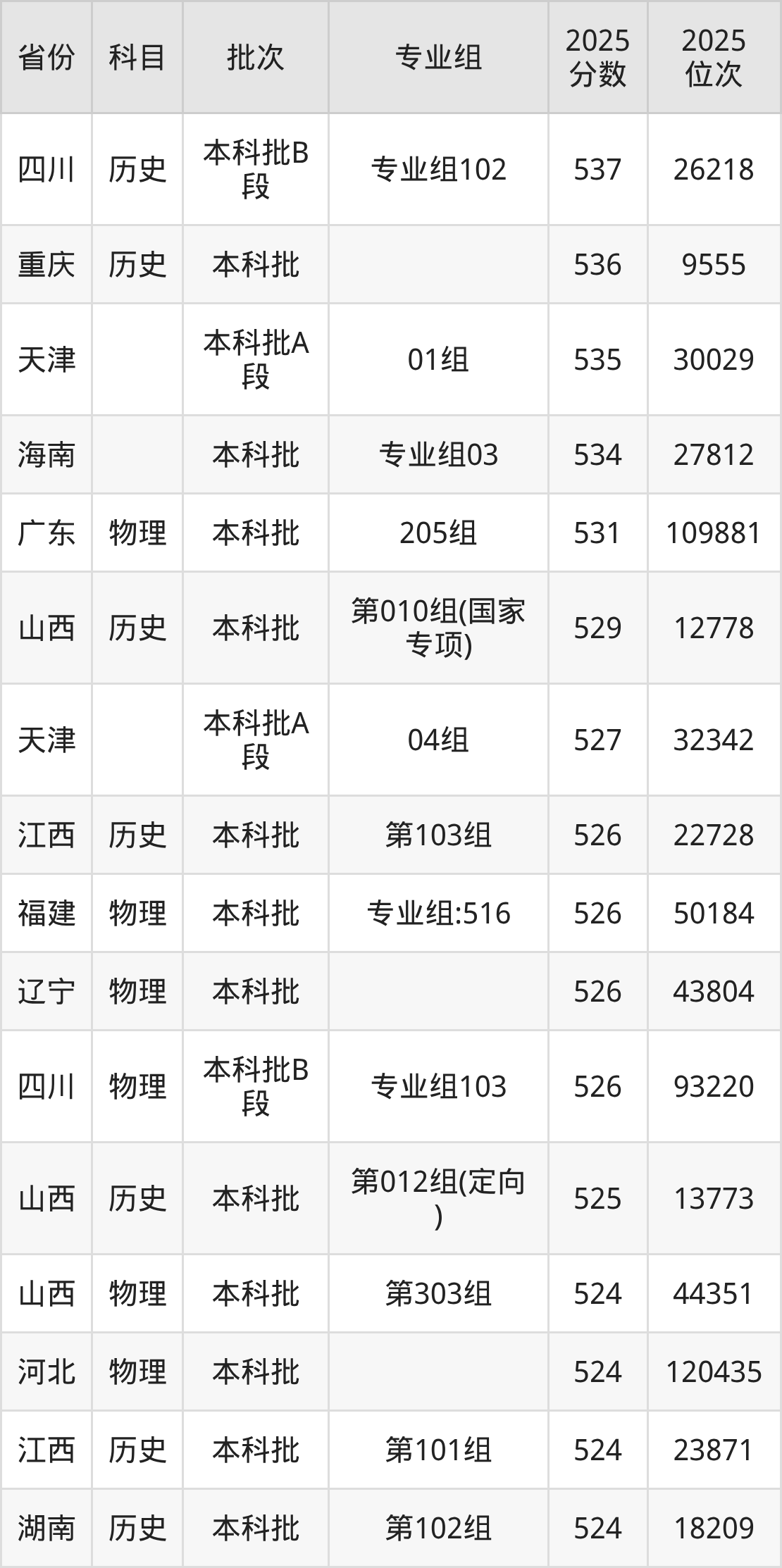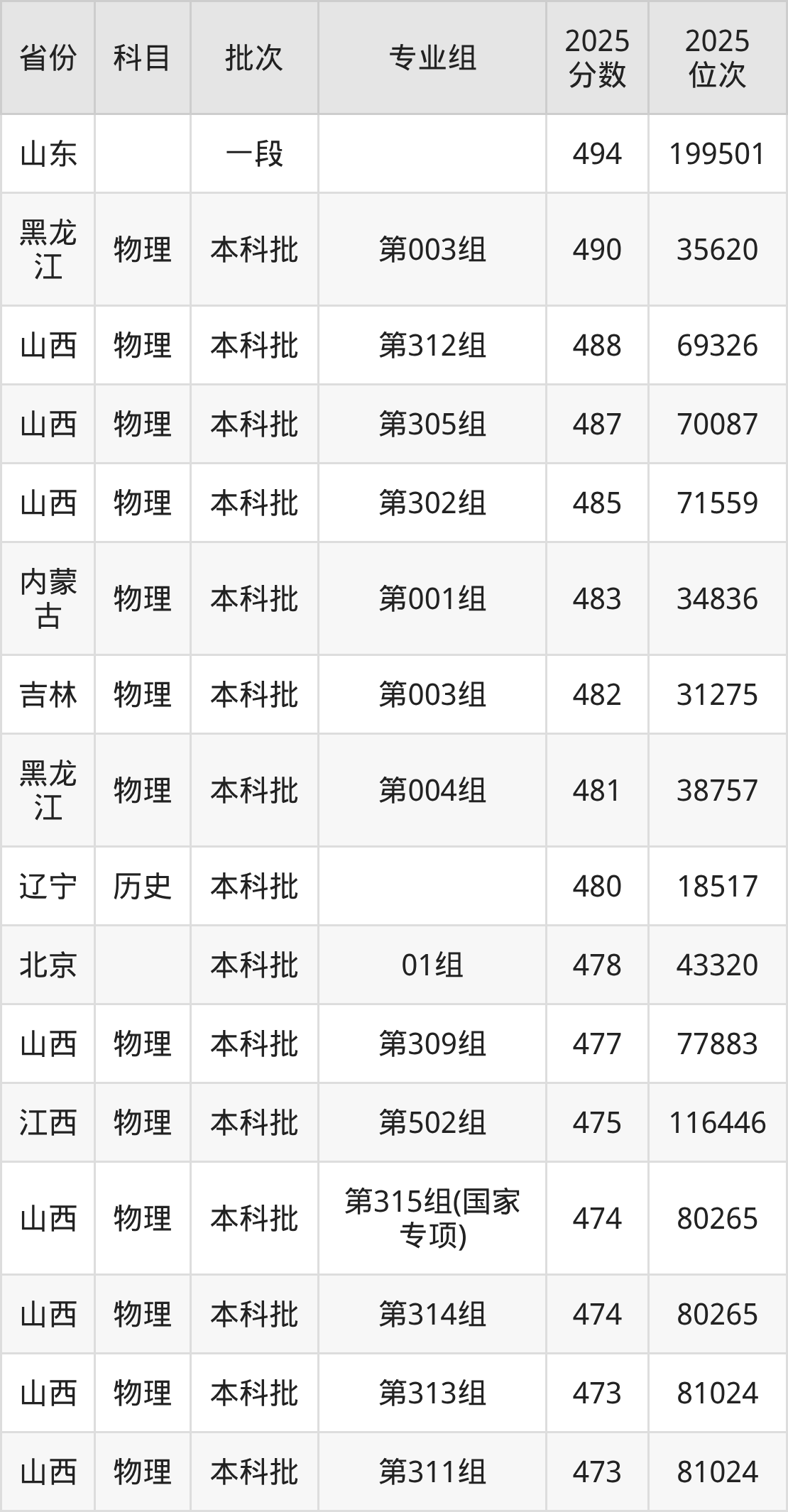 参考2025年山东省高考招录数据,按照分数线从高到低依次为大家展示山西大同大学各个专业录取分数线。