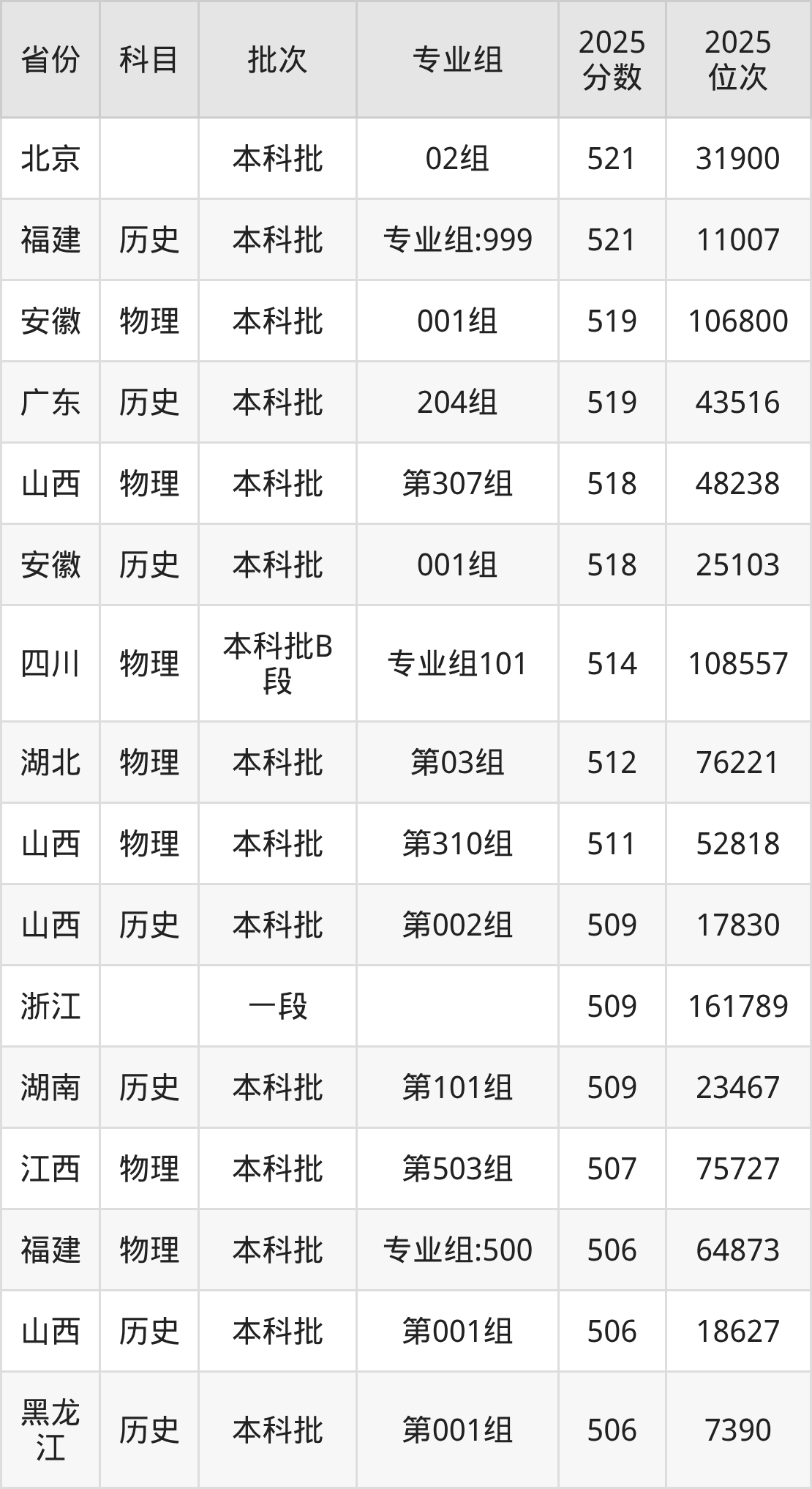 2025年山西大同大学各专业录取分数线从494分到558分不等,录取分数线最低的专业是数学与应用数学;录取分数线最高的专业是中医学。本文将展示山西大同大学所有专业最低分数线及位次,供2026届高考生参考。