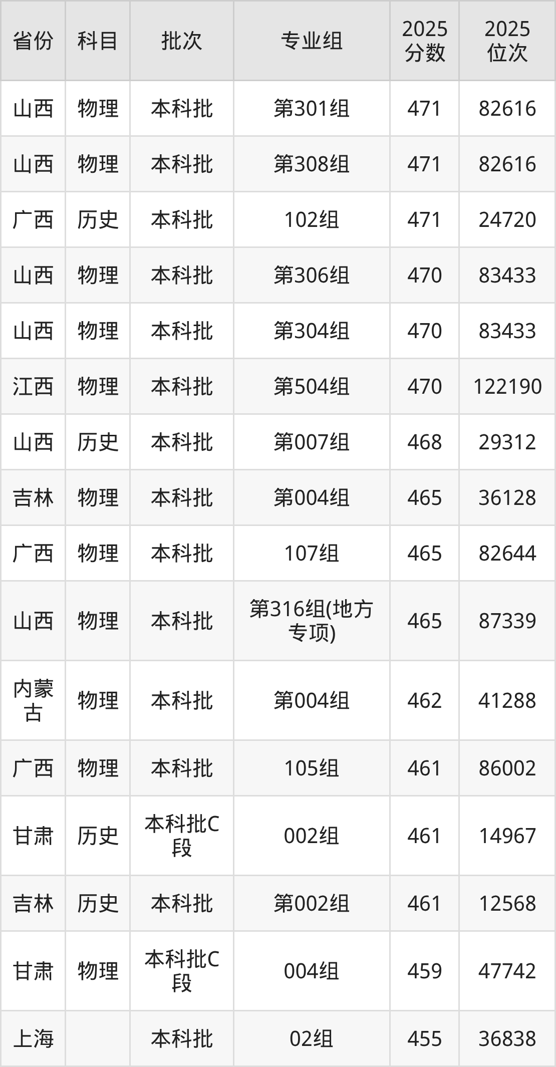 下面是2025年山西大同大学在全国各省录取最低分数据及位次,各位考生也可作为一个参考。