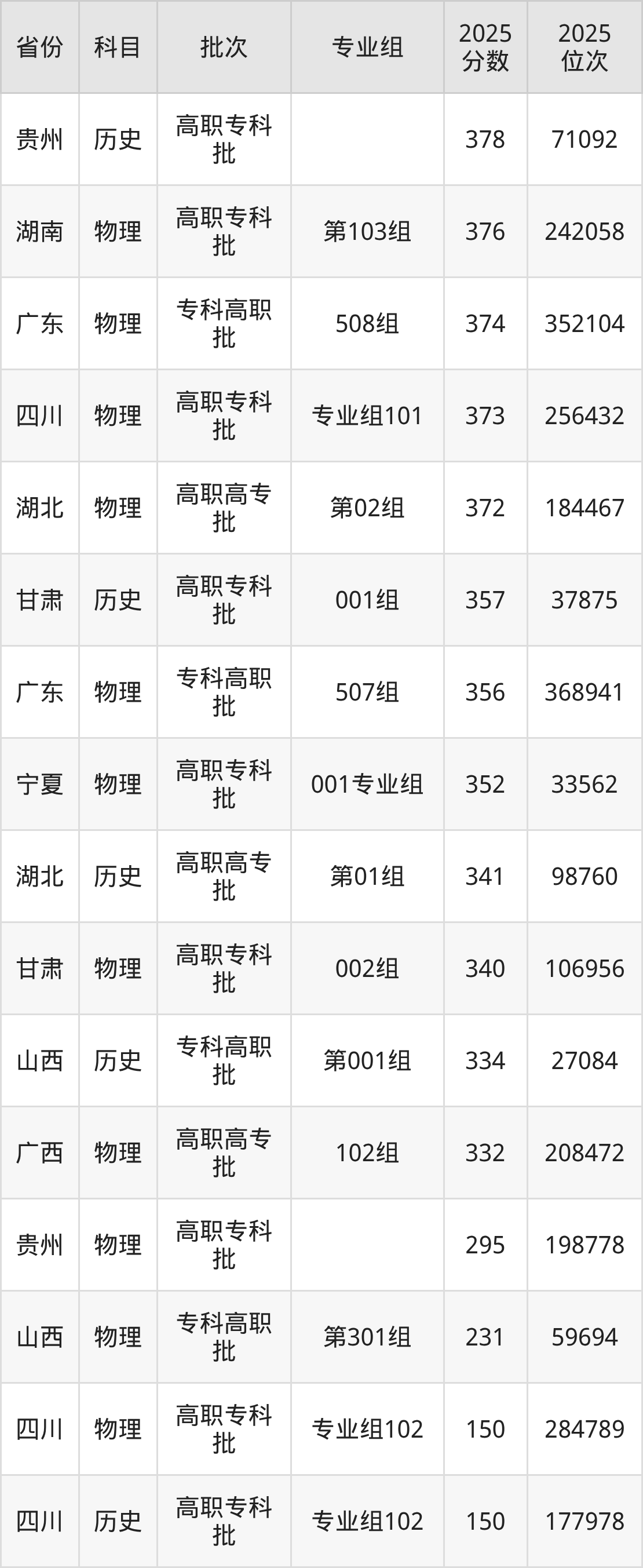 5、导游:378分、位次71092名;