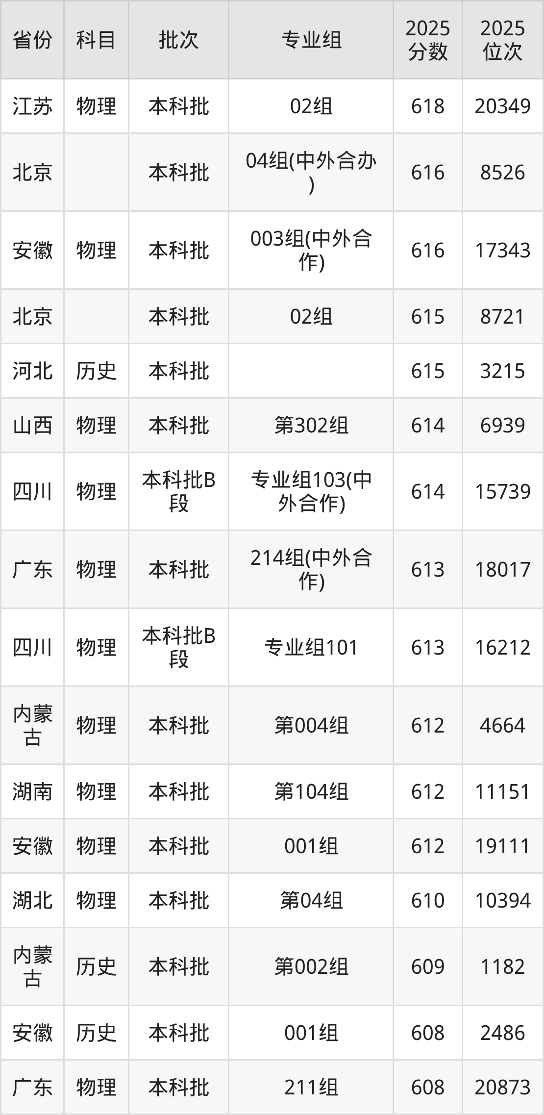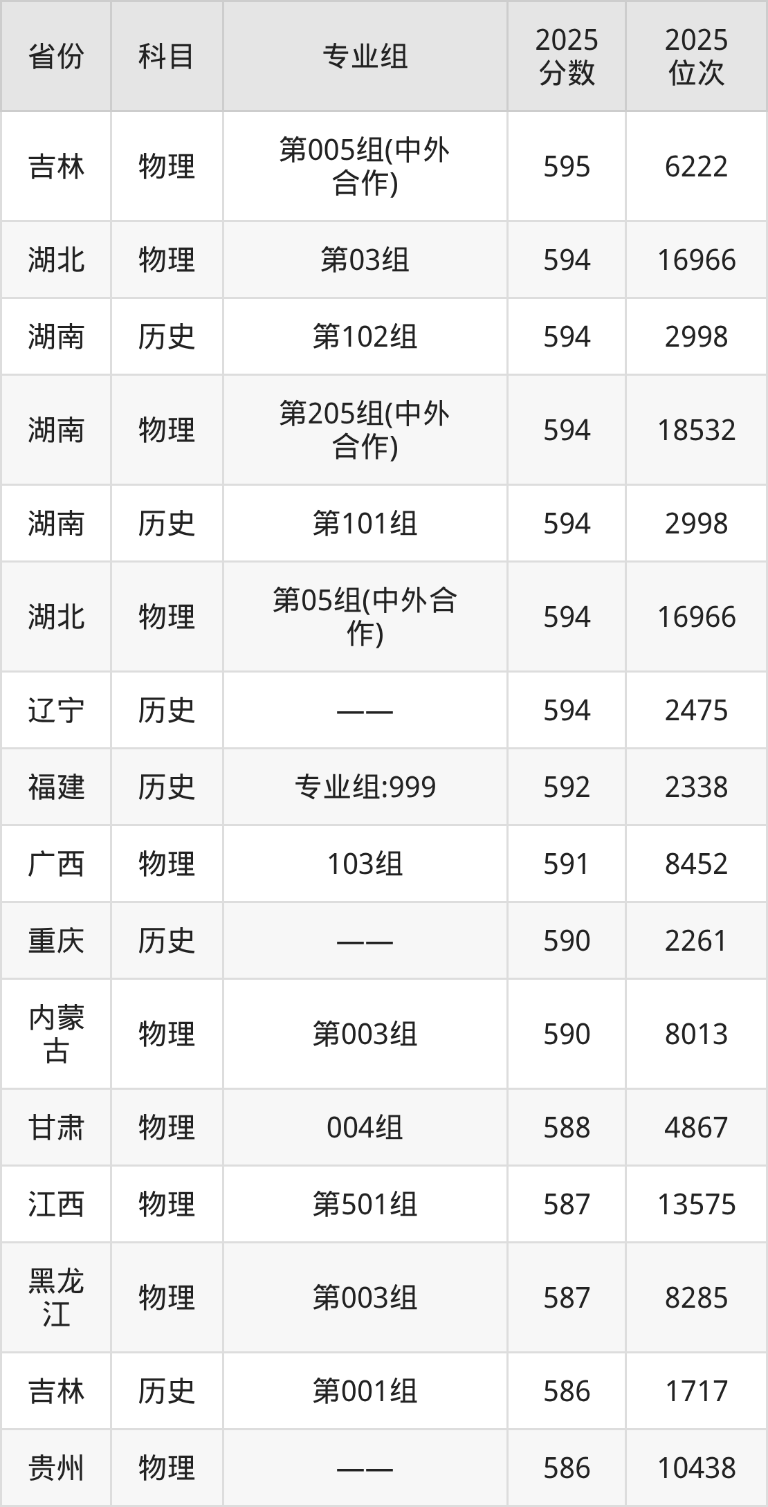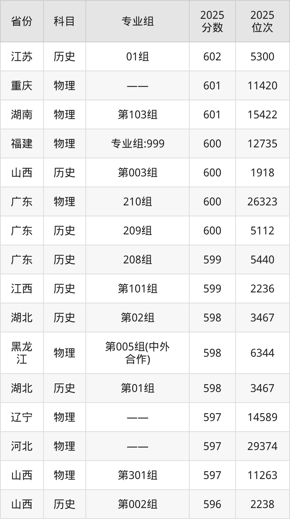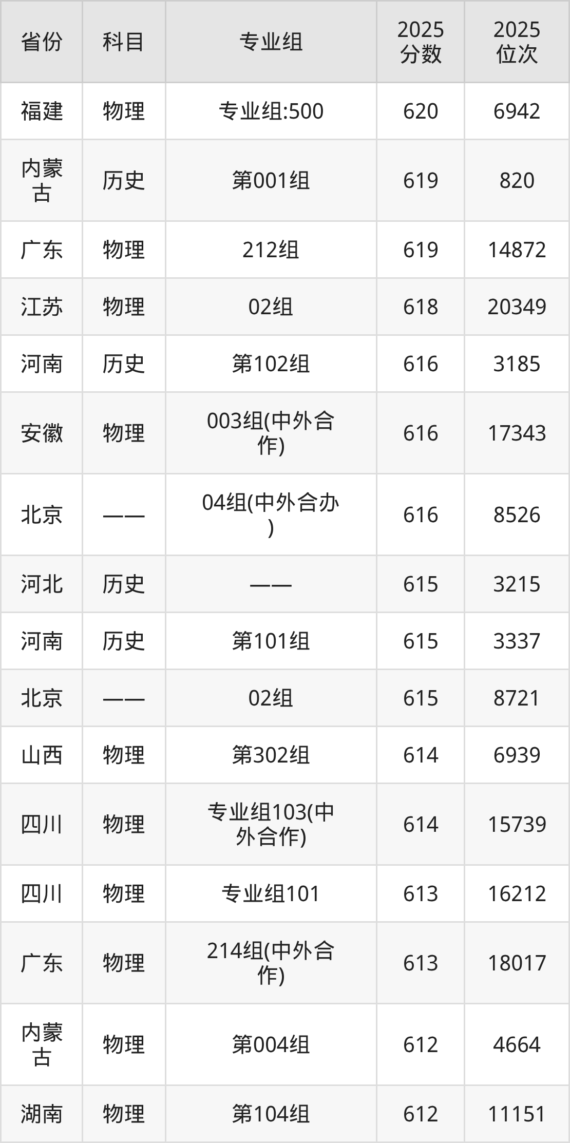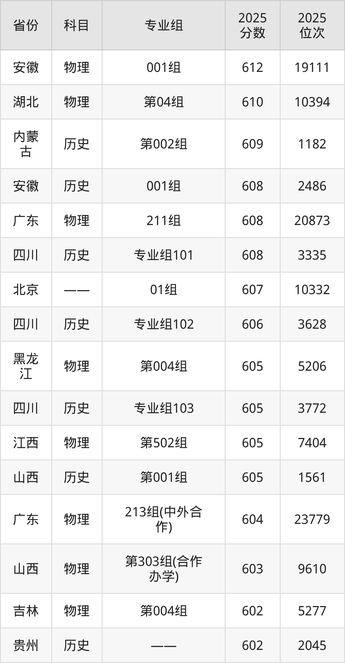 12、计算机科学与技术(中外合作办学)(合作院校为澳大利亚悉尼科技大学):606分、位次20756名;