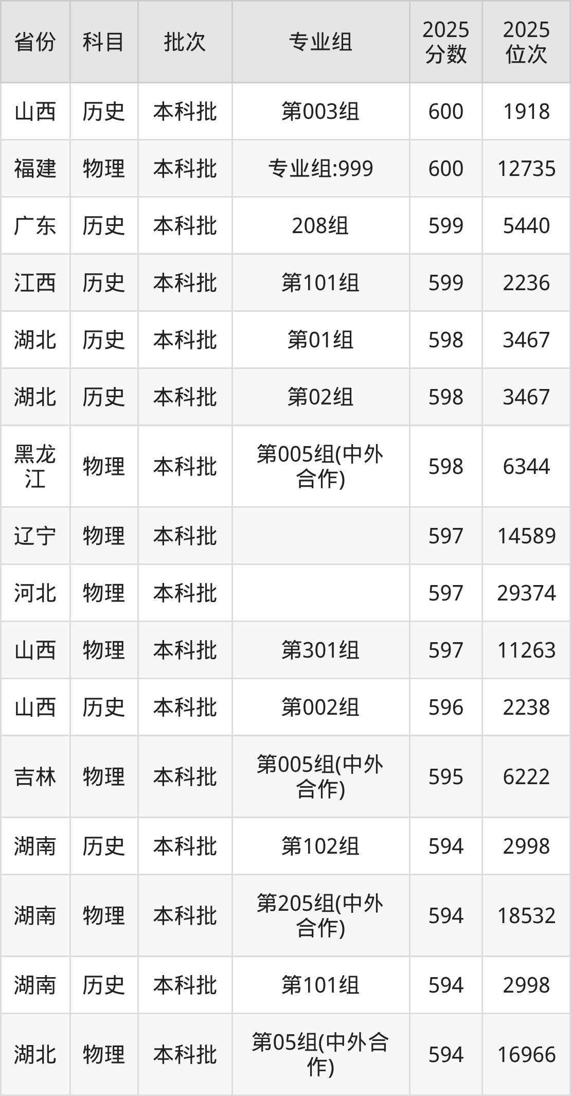 17、外国语言文学类:600分、位次24979名;
