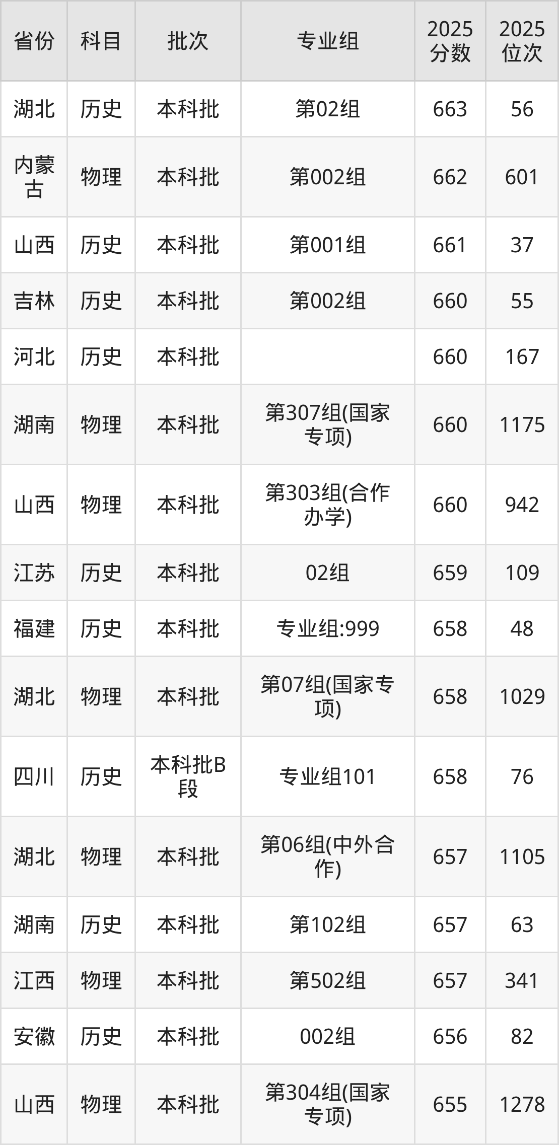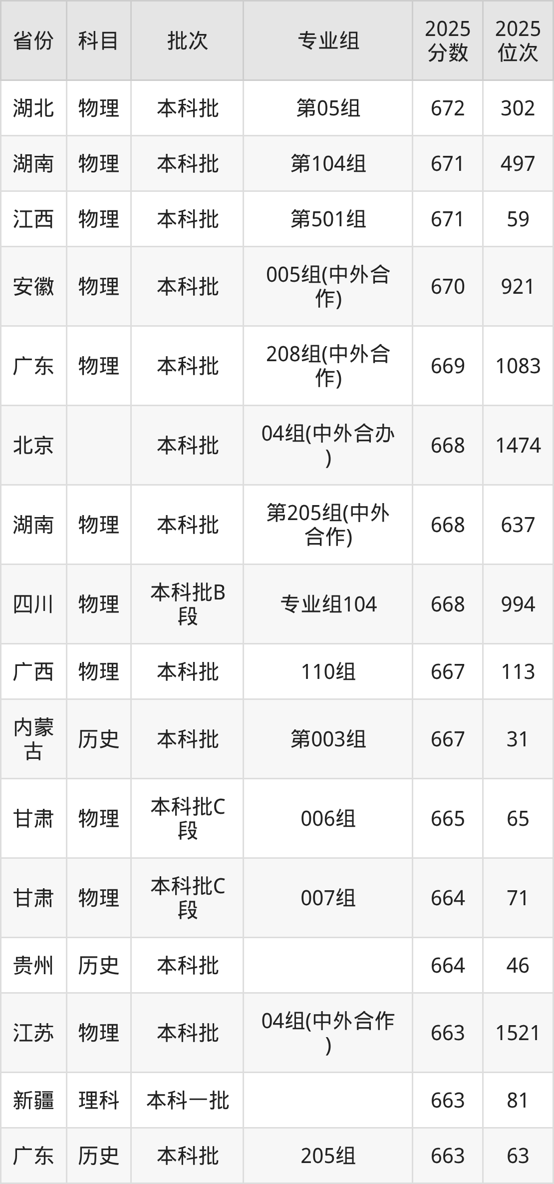 14、工科试验班类(包含专业:机械类、海洋工程类、材料科学与工程、航空航天工程、智慧能源工程、可持续能源、健康科学与技术):668分、位次993名;