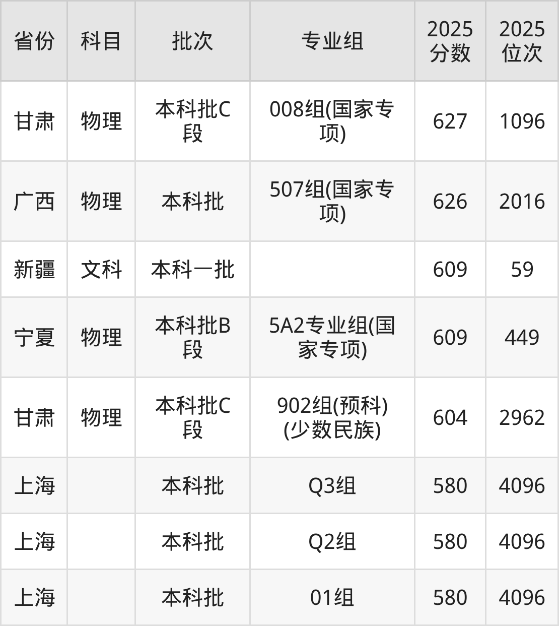 2025年上海交通大学全国录取分数线580分到826分,录取最高在海南(专业组02)、录取最低在上海(01组)。