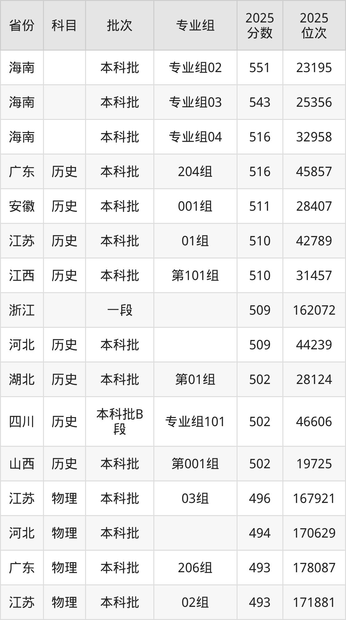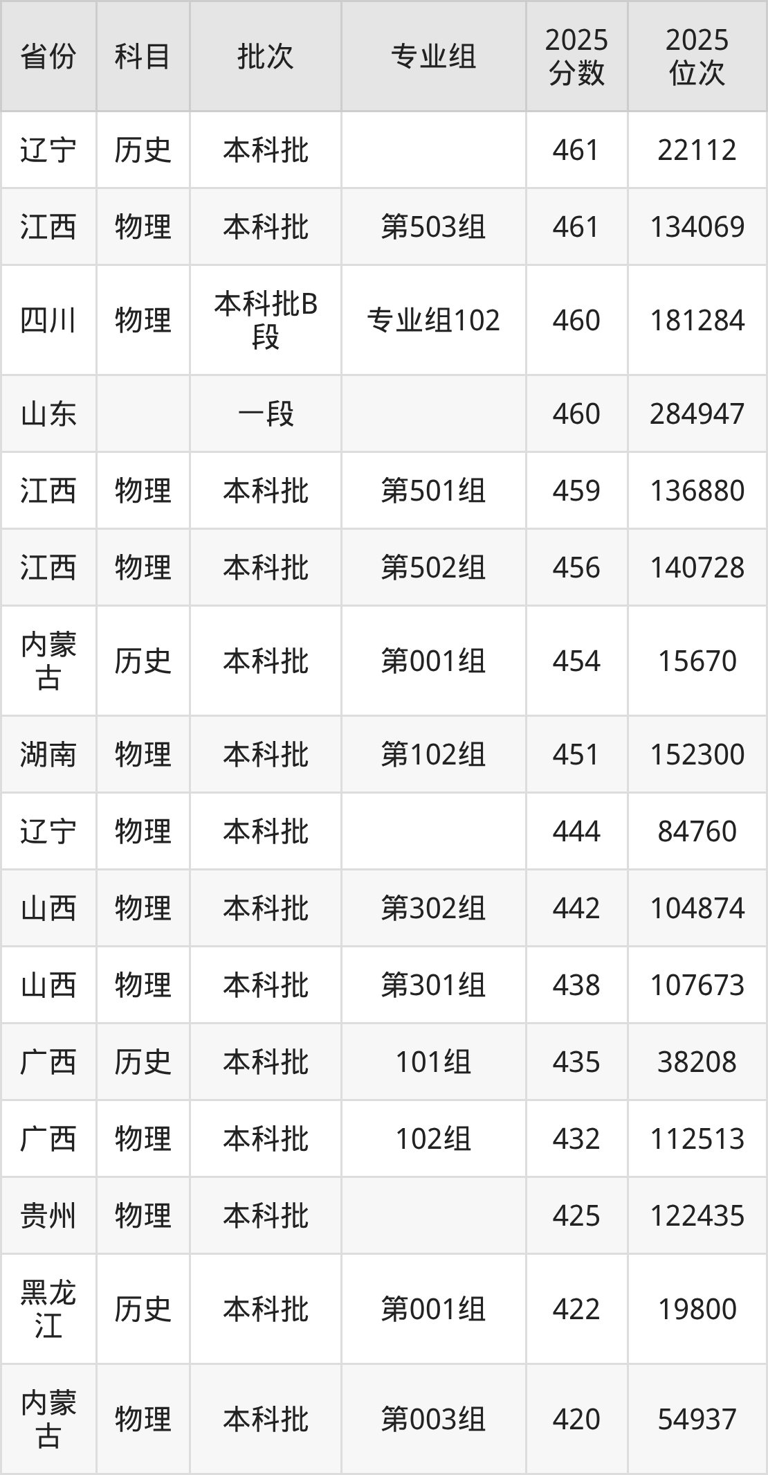 下面是2025年南昌大学科学技术学院在全国各省录取最低分数据及位次,各位考生也可作为一个参考。