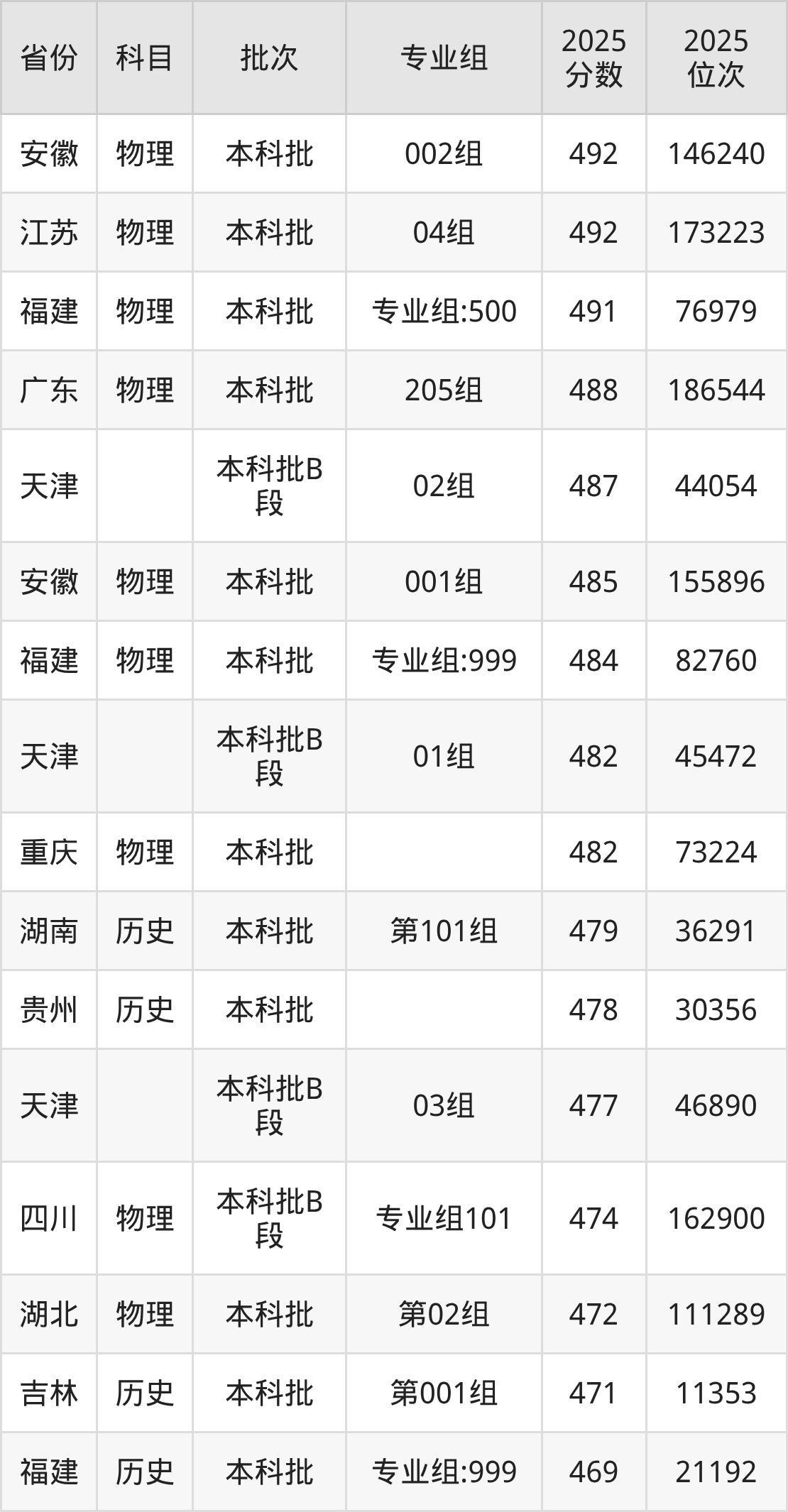 南昌大学科学技术学院录取分数线普遍在490分及以上,最高分和最低分专业分数线相差46分、位次相差112312名。可见,对于有专业要求的同学而言,并不能简单参考学校的最低分,否则很容易被录取到不喜欢的专业。