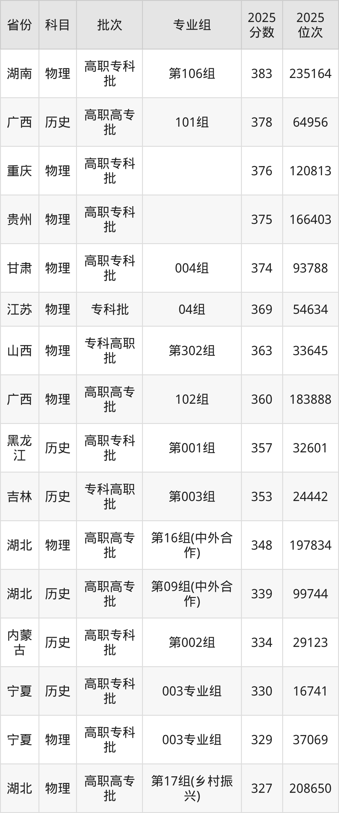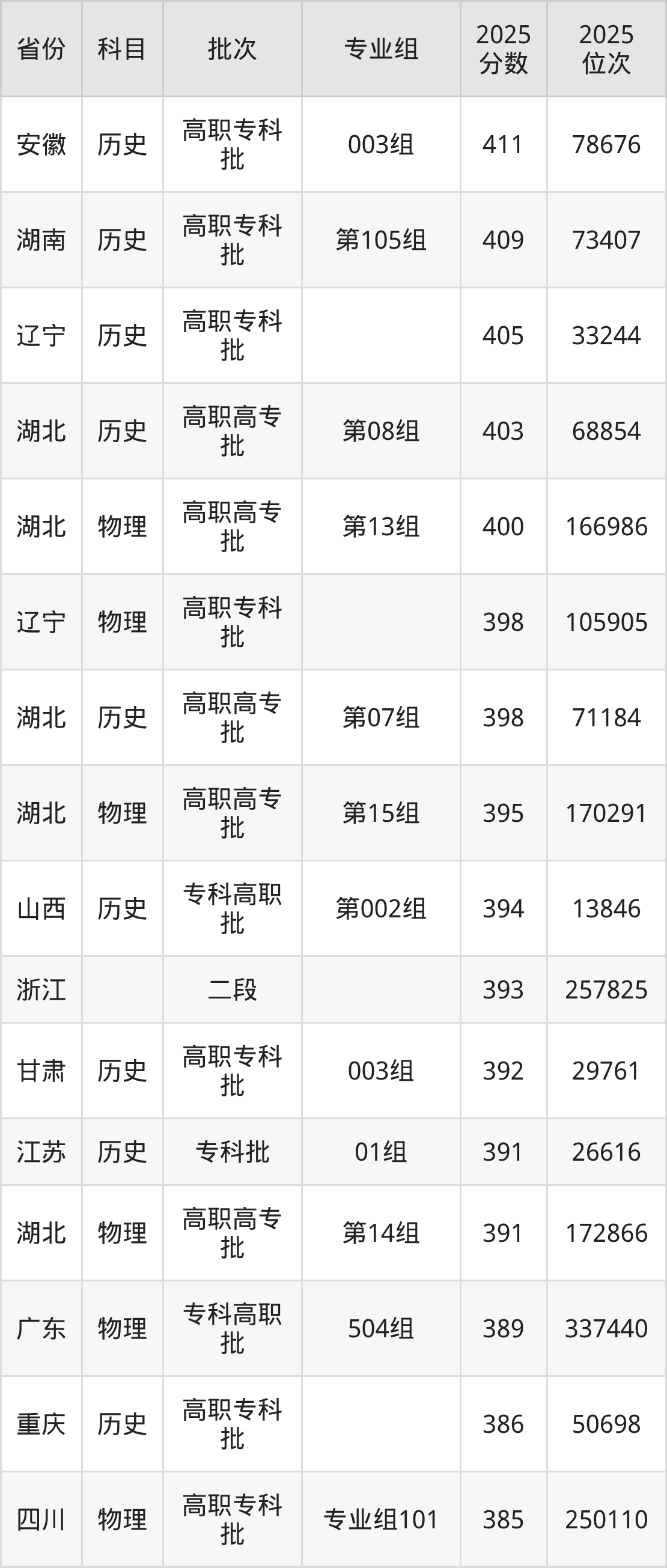 下面是2025年武汉交通职业学院在全国各省录取最低分数据及位次,各位考生也可作为一个参考。
