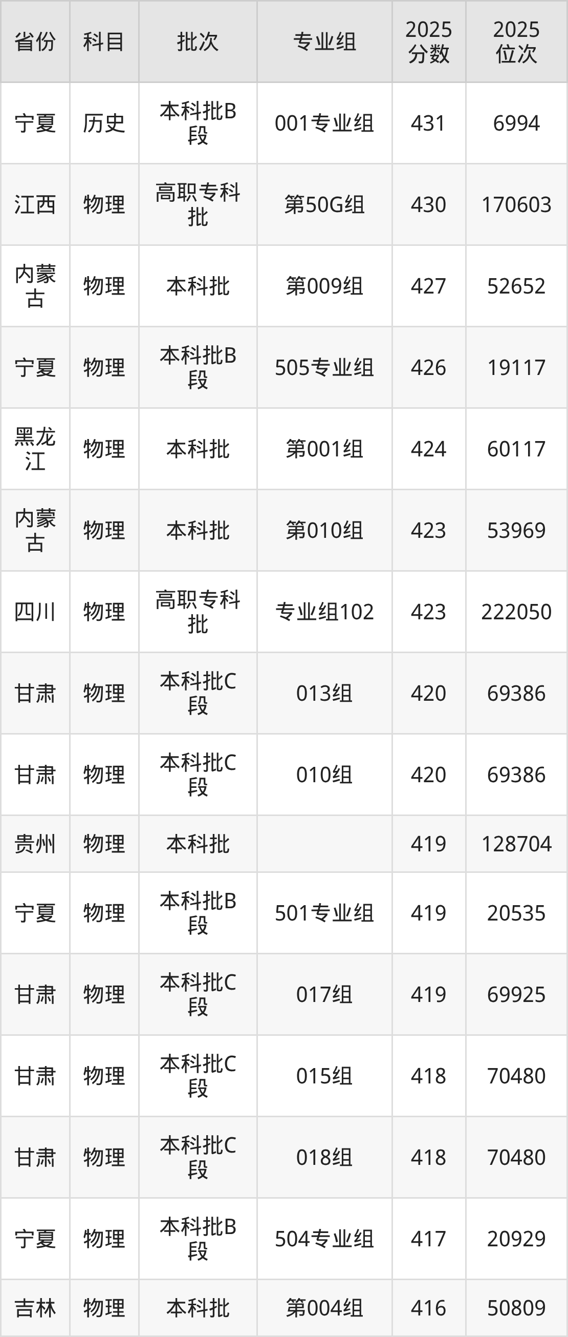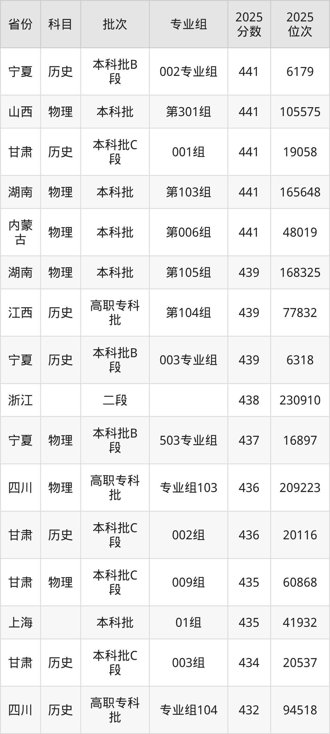 齐鲁医药学院录取分数线普遍在430分及以上,最高分和最低分专业分数线相差177分、位次相差378604名。可见,对于有专业要求的同学而言,并不能简单参考学校的最低分,否则很容易被录取到不喜欢的专业。