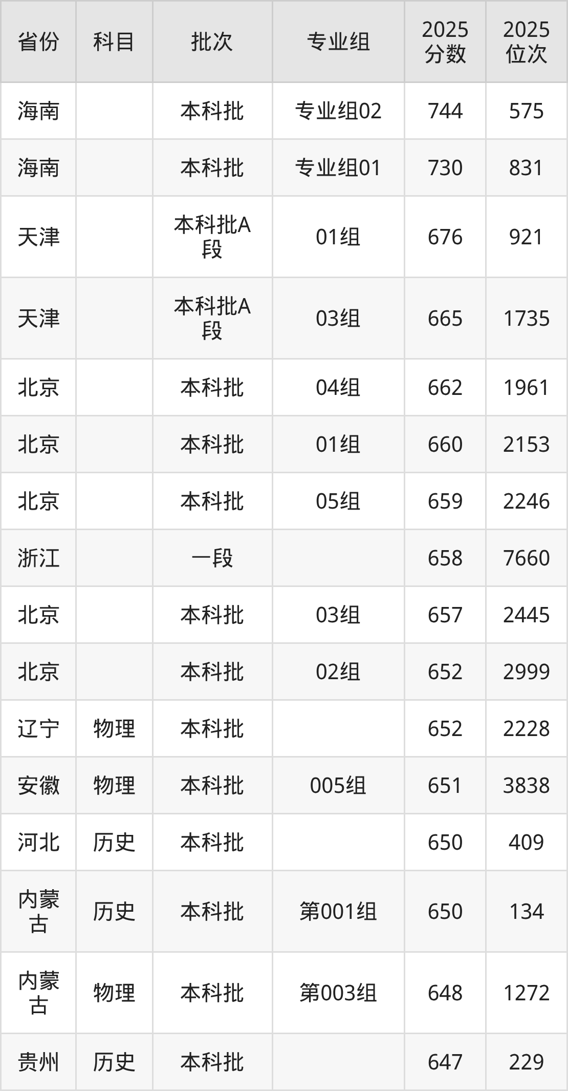 下面是2025年北京师范大学在全国各省录取最低分数据及位次,各位考生也可作为一个参考。