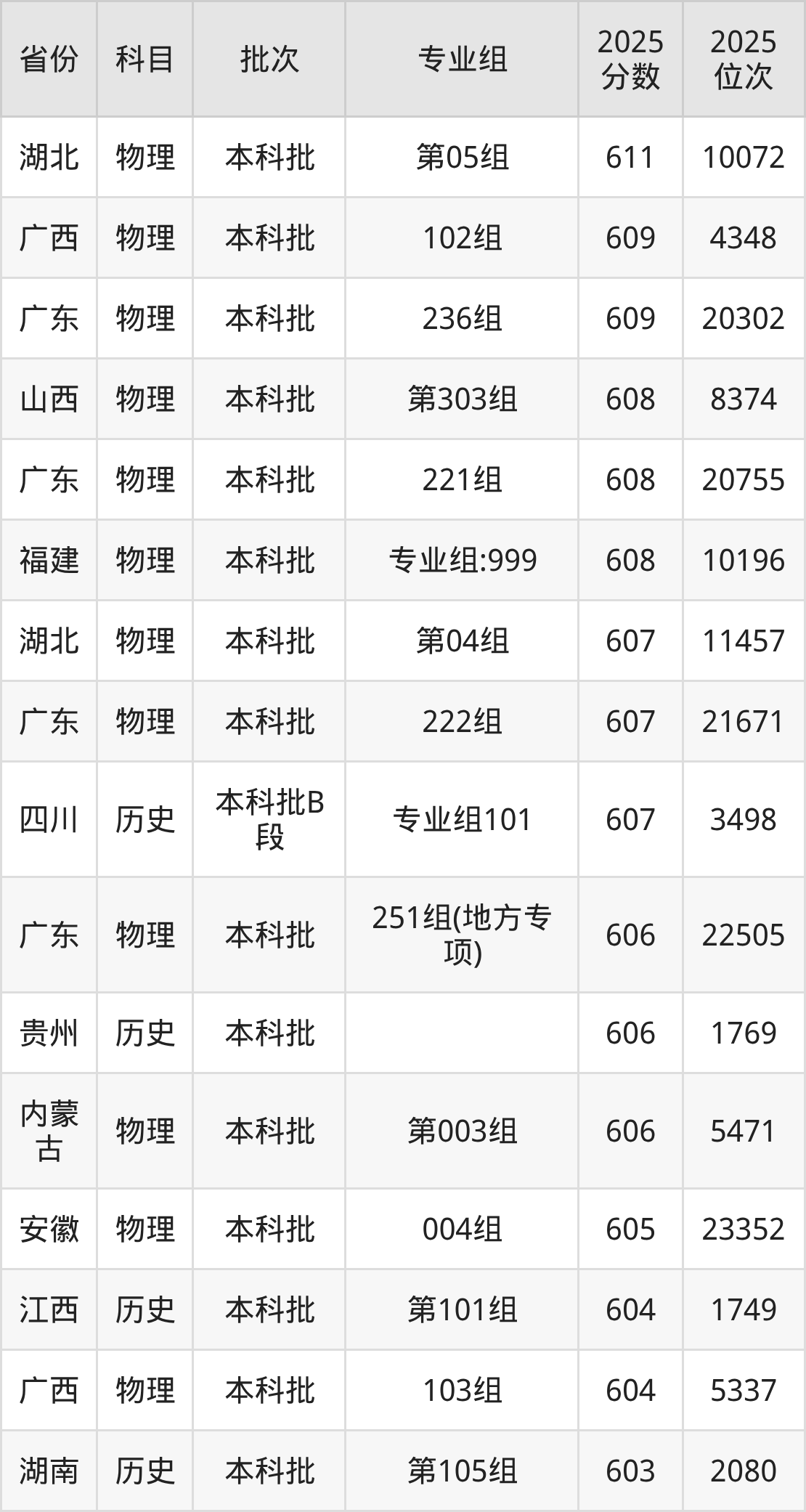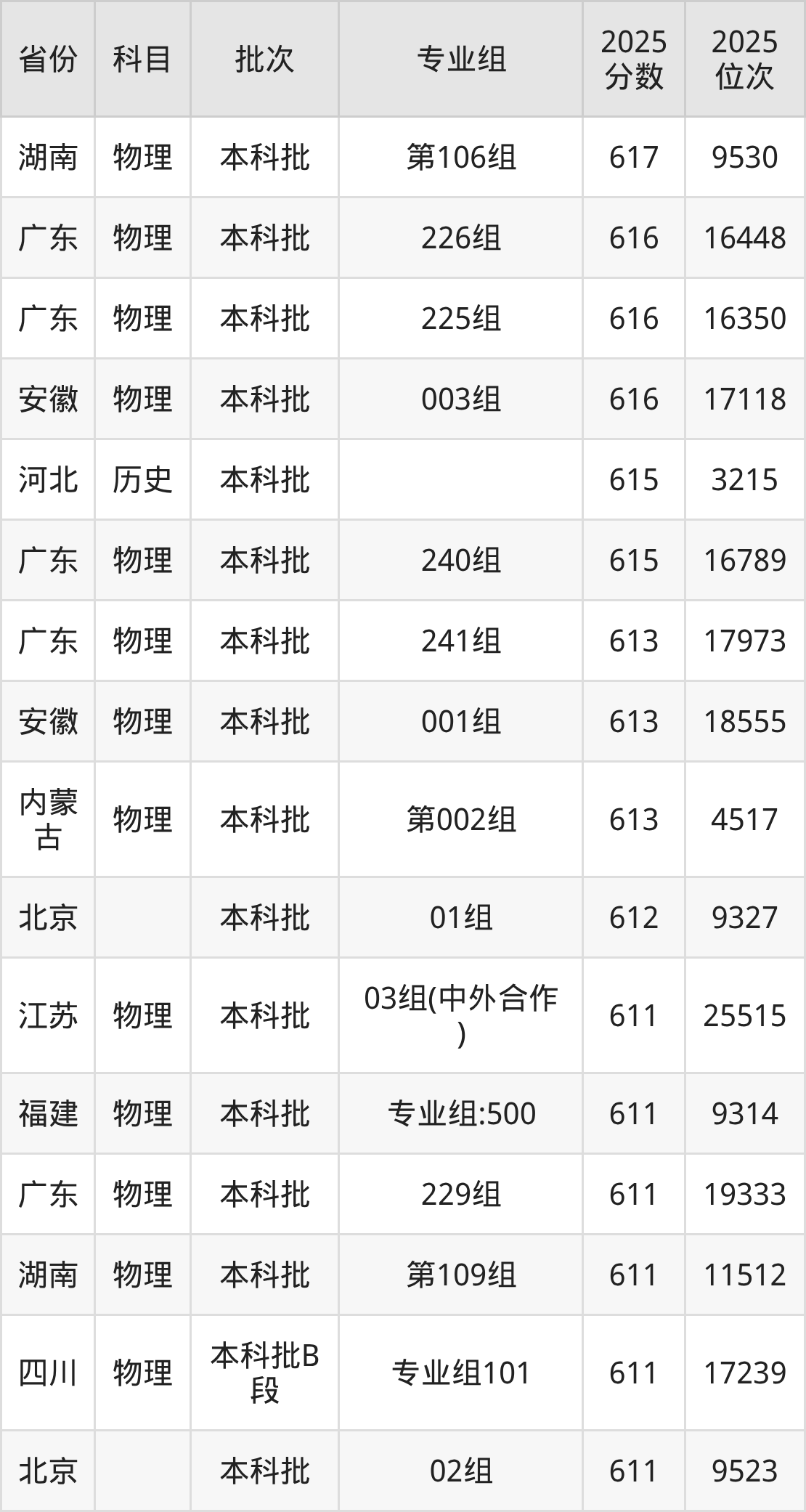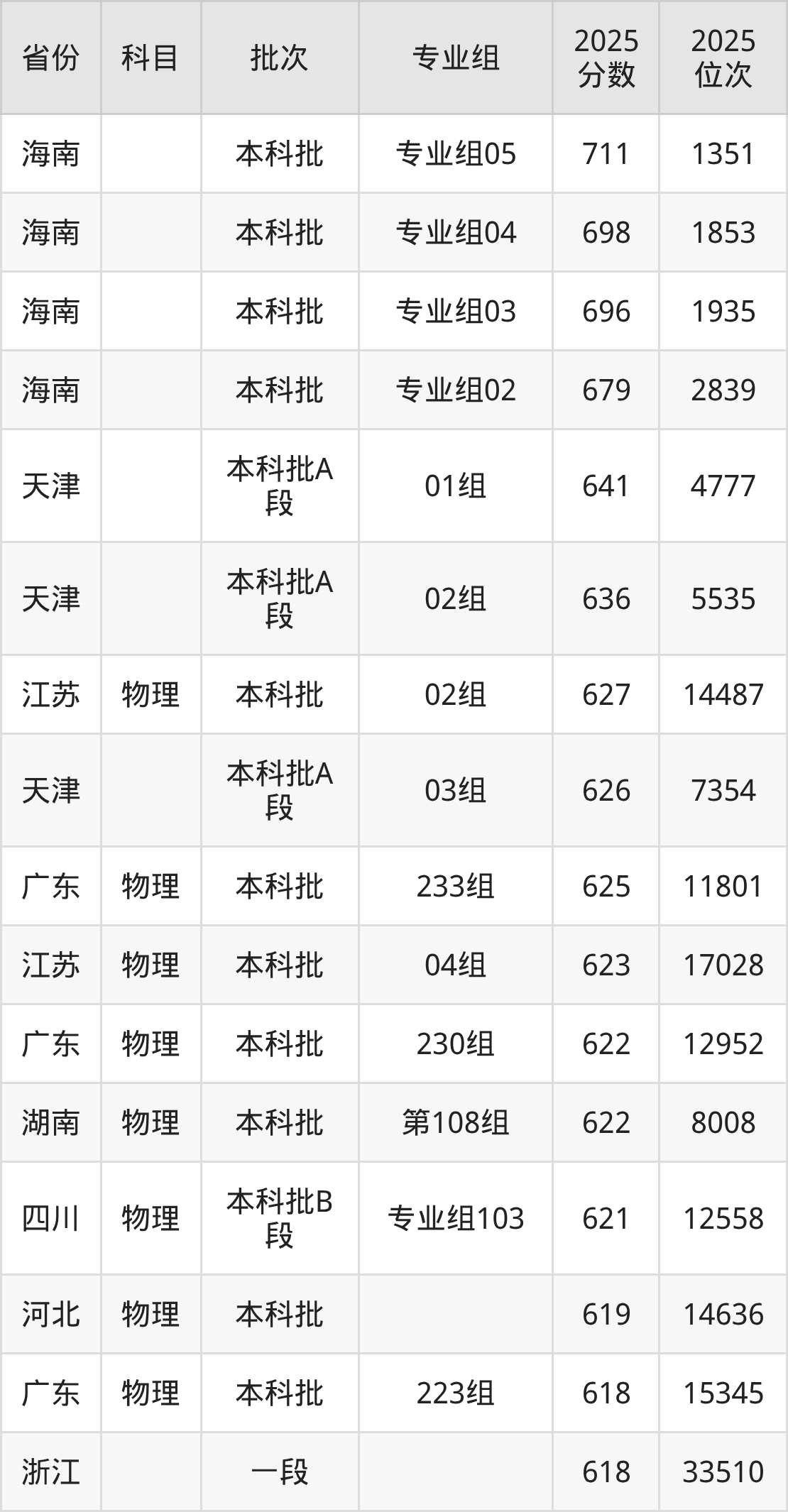下面是2025年深圳大学在全国各省录取最低分数据及位次,各位考生也可作为一个参考。