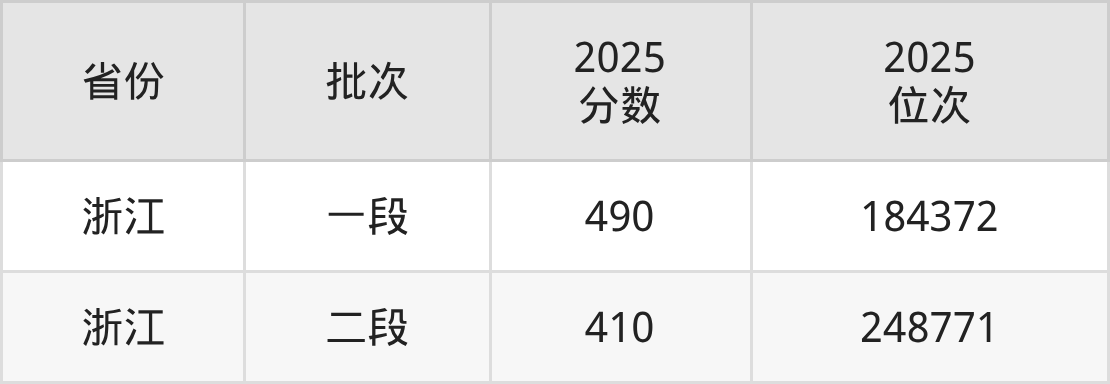 三、浙江长征职业技术学院2025年录取分数线