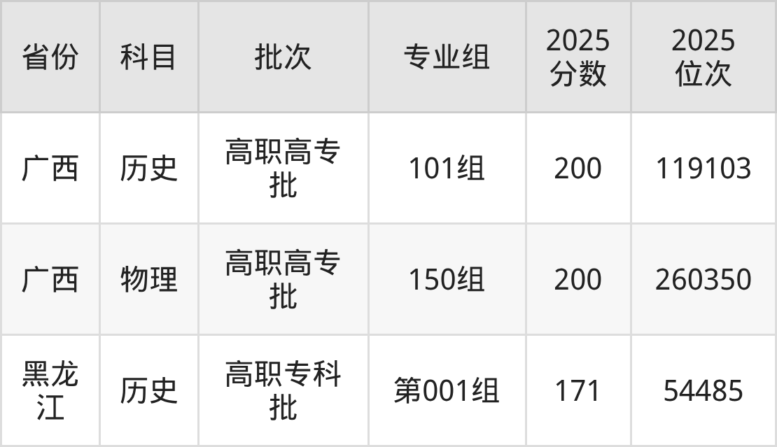 下面是2025年广西理工职业技术学院在全国各省录取最低分数据及位次,各位考生也可作为一个参考。