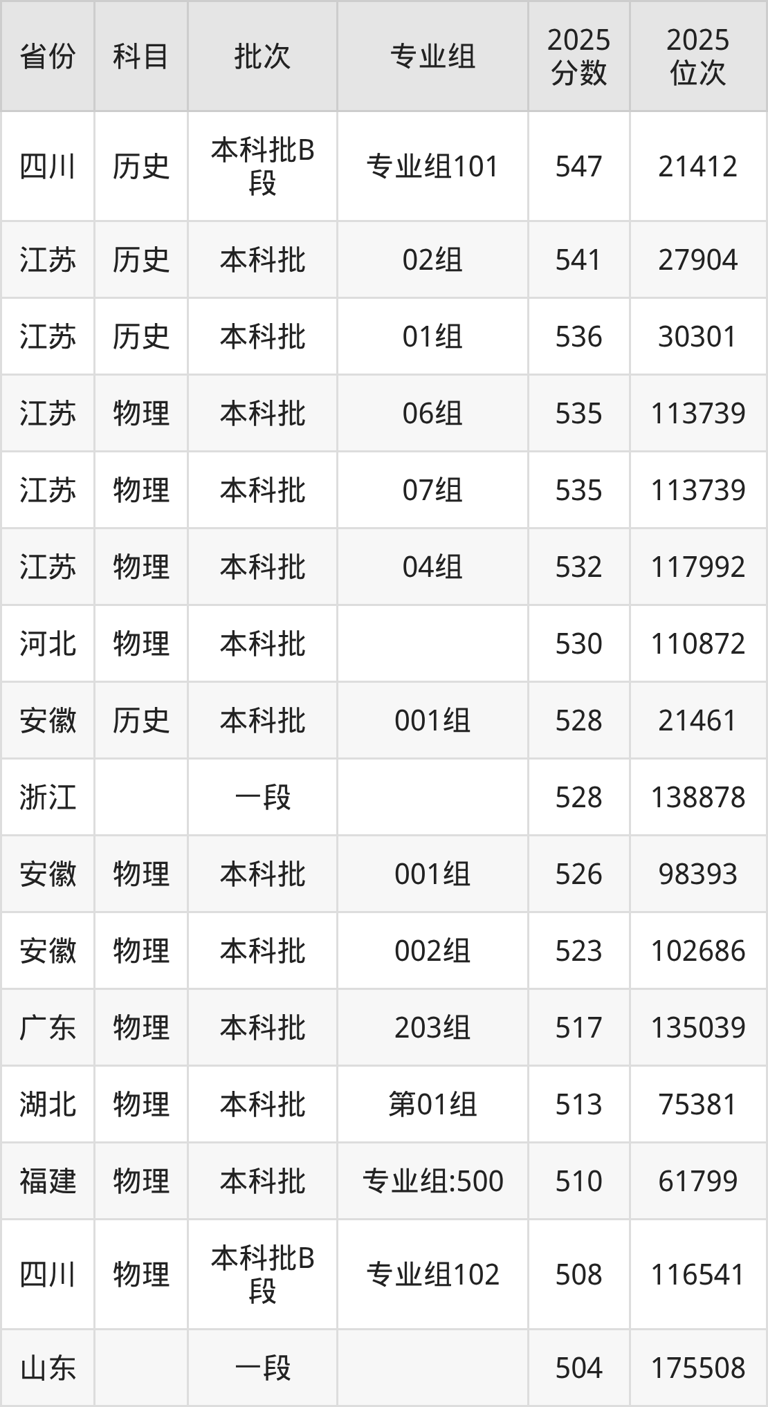 参考2025年山东省高考招录数据,按照分数线从高到低依次为大家展示南京体育学院各个专业录取分数线。