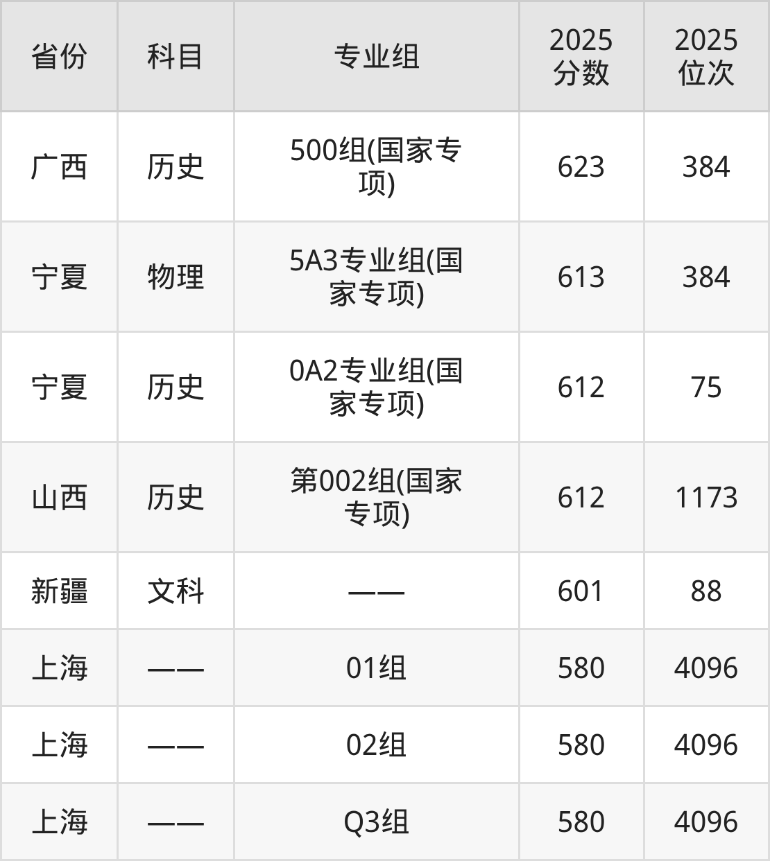 一、复旦大学2025年专业录取分数线