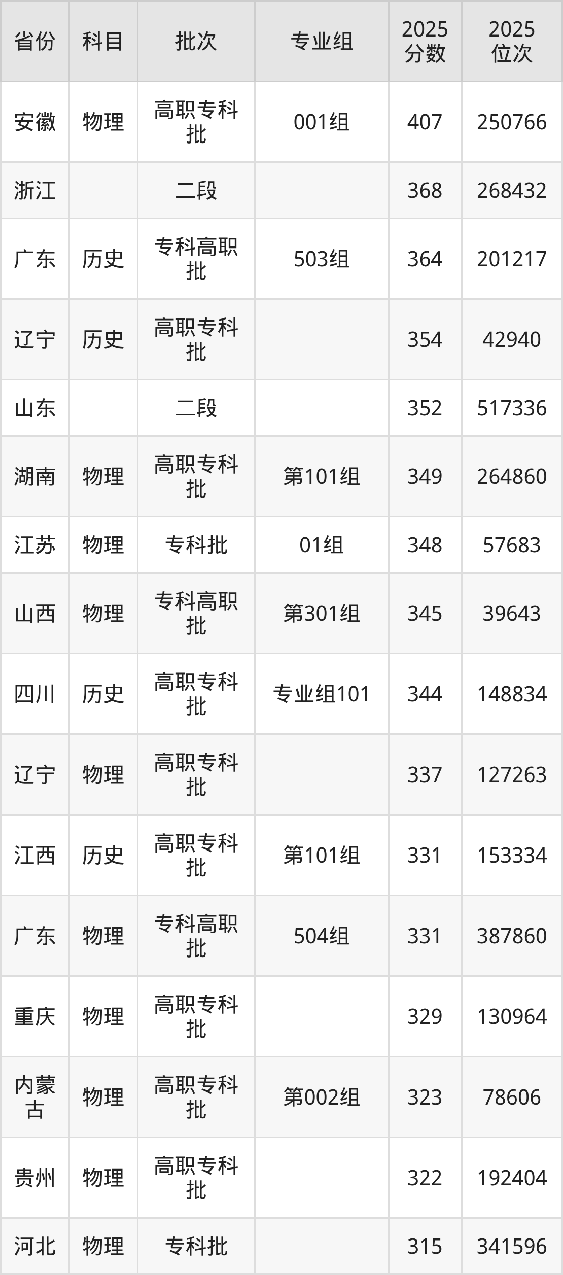 下面是2025年厦门南洋职业学院在全国各省录取最低分数据及位次,各位考生也可作为一个参考。