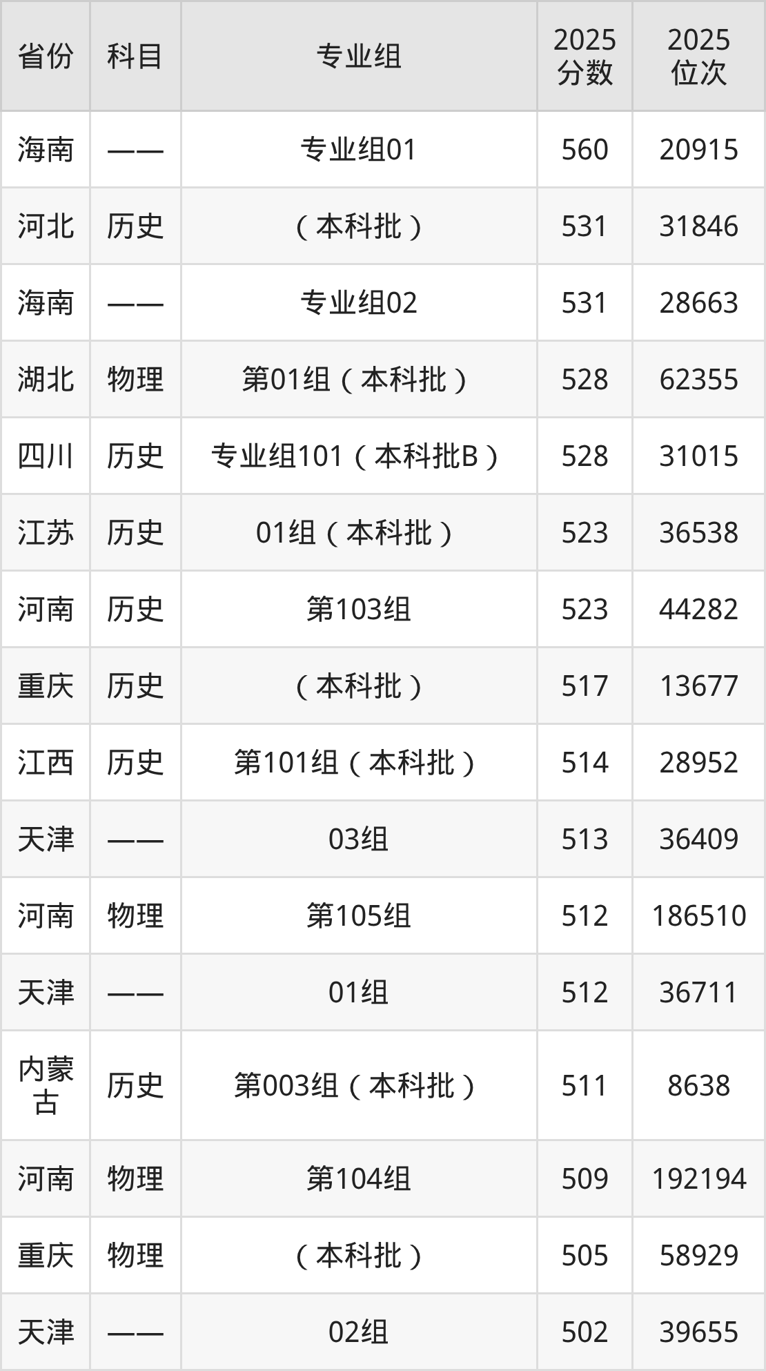 2025年兰州石化职业技术大学全国录取分数线224分到560分,录取最高在海南(专业组01)、录取最低在新疆(理科)。