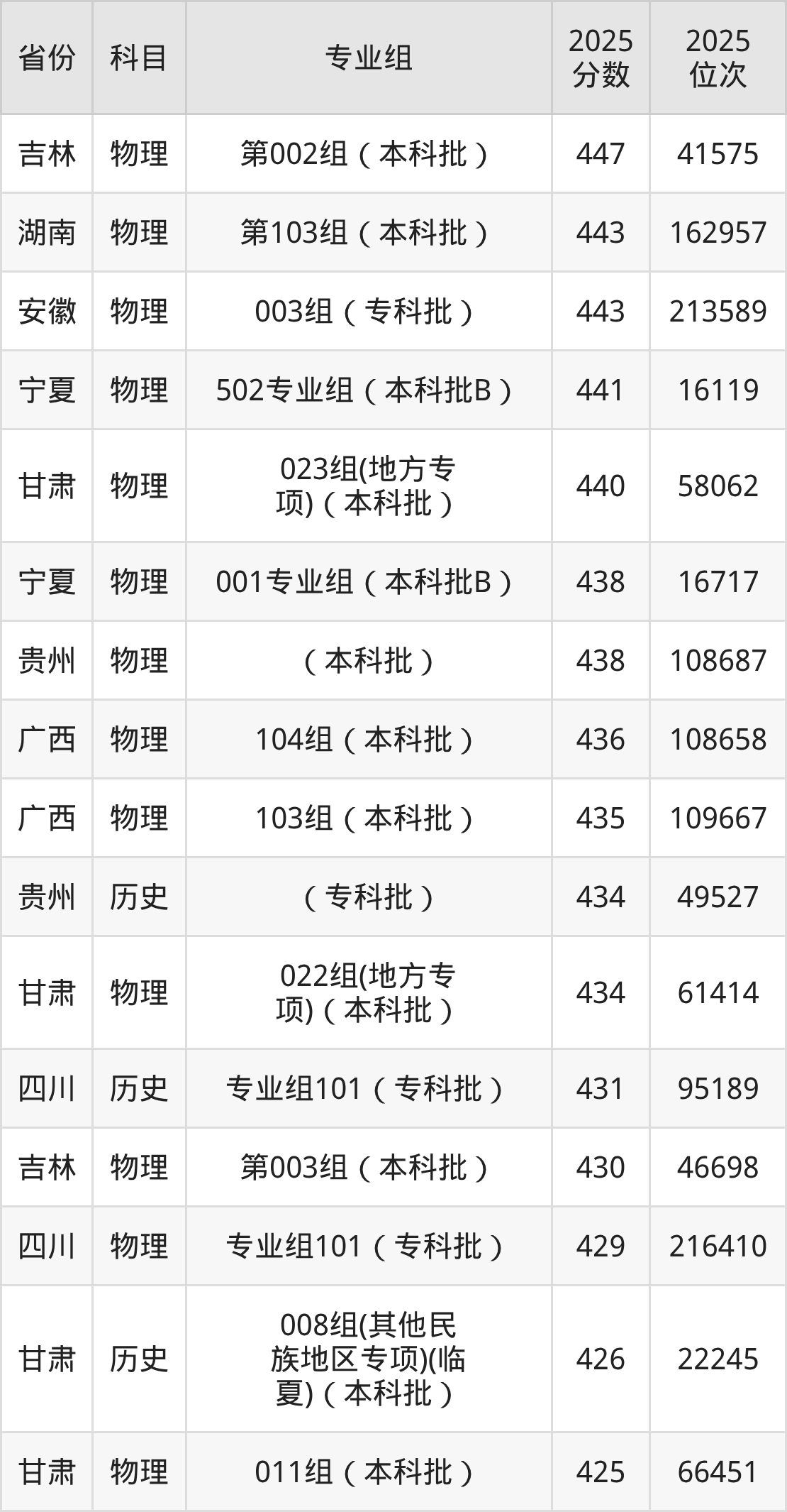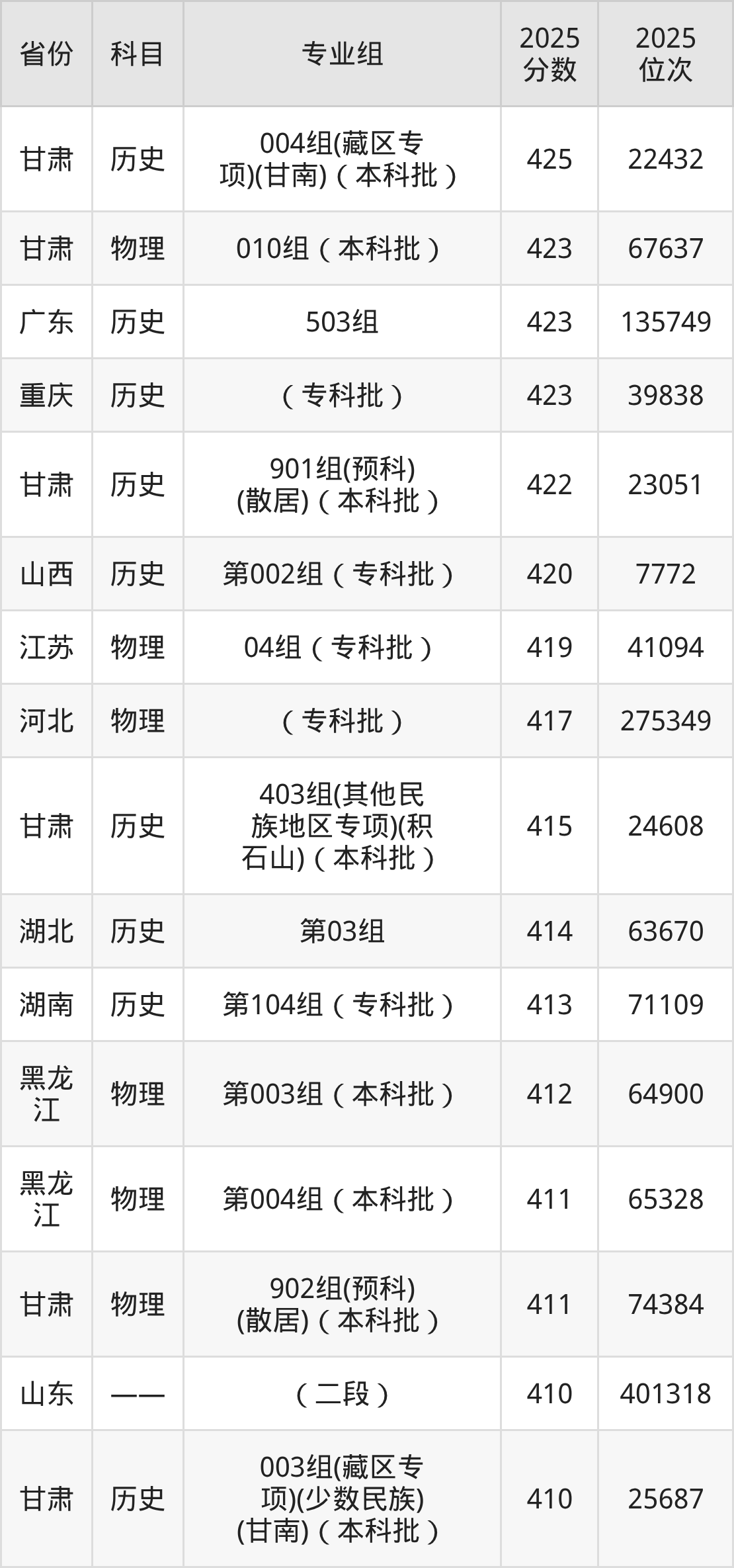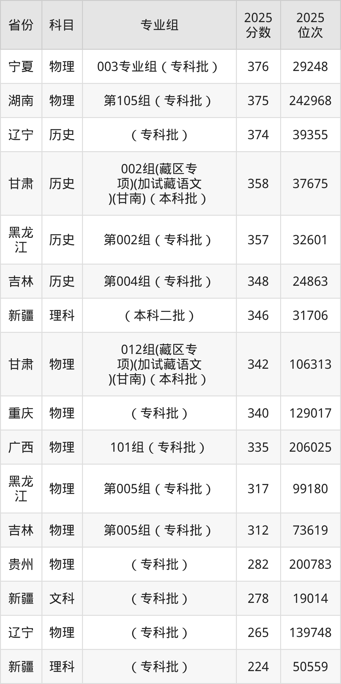 下面是2025年兰州石化职业技术大学在全国各省录取最低分数据及位次,各位考生也可作为一个参考。