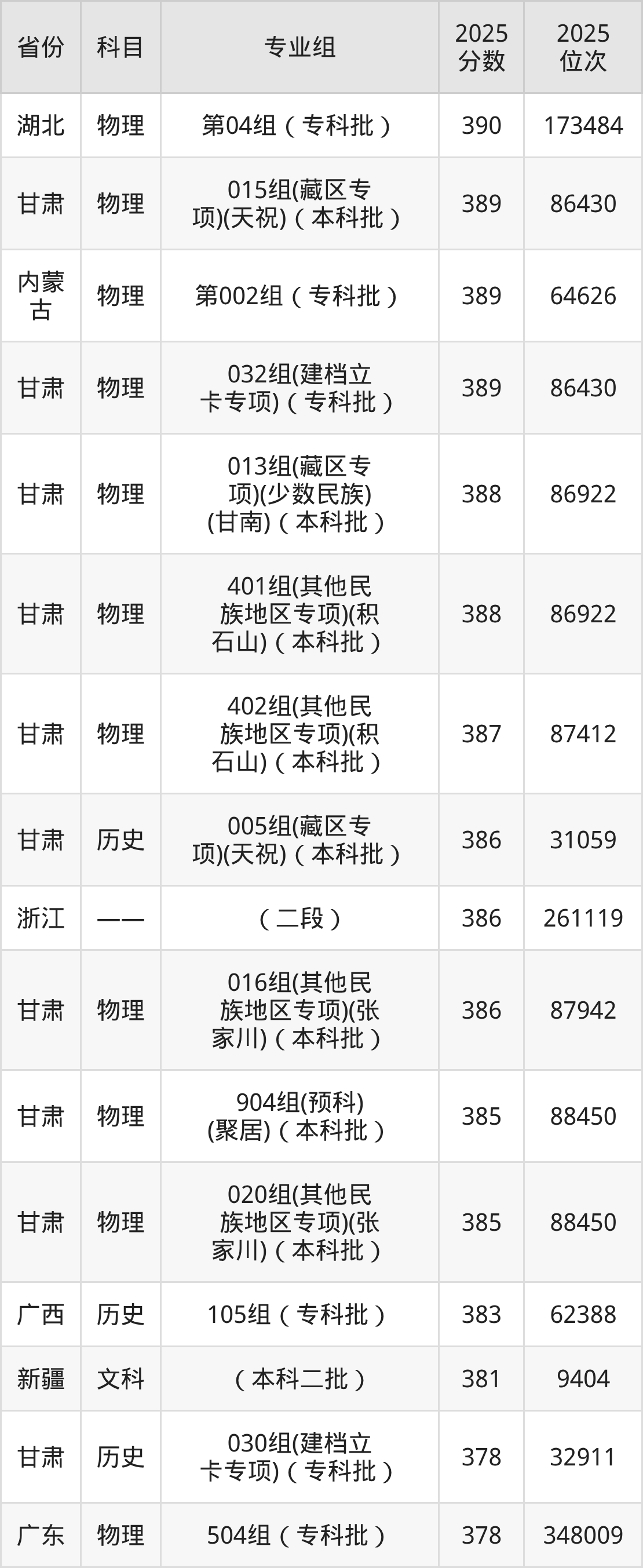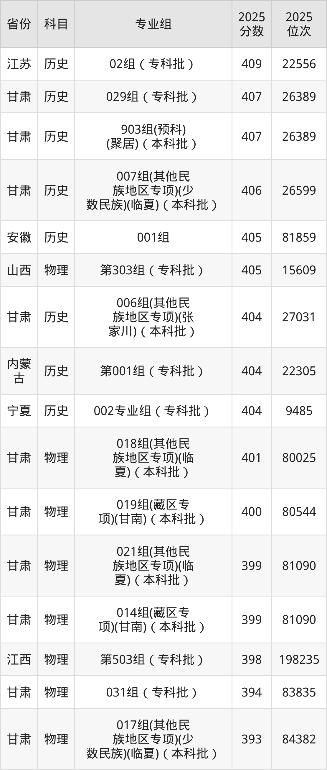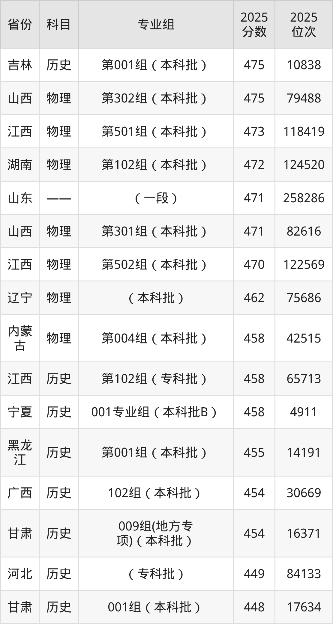 下面是2025年兰州石化职业技术大学在全国各省录取最低分数据及位次,各位考生也可作为一个参考。