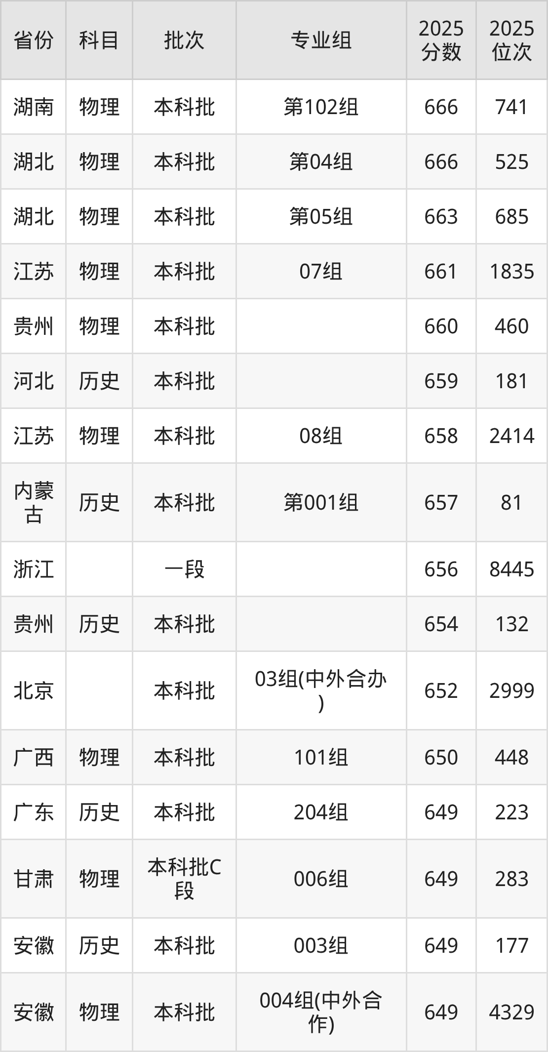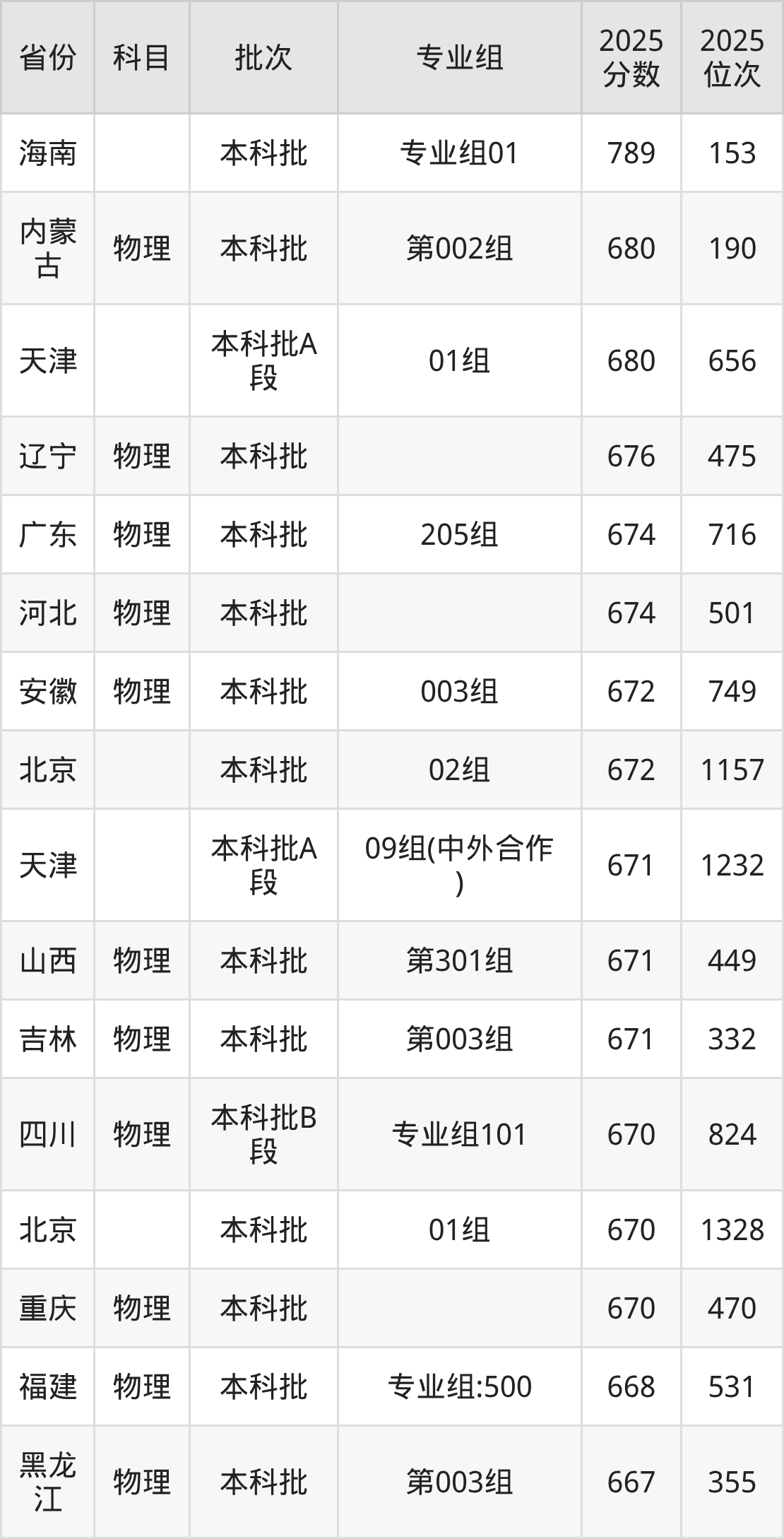 参考2025年山东省高考招录数据,按照分数线从高到低依次为大家展示南京大学各个专业录取分数线。