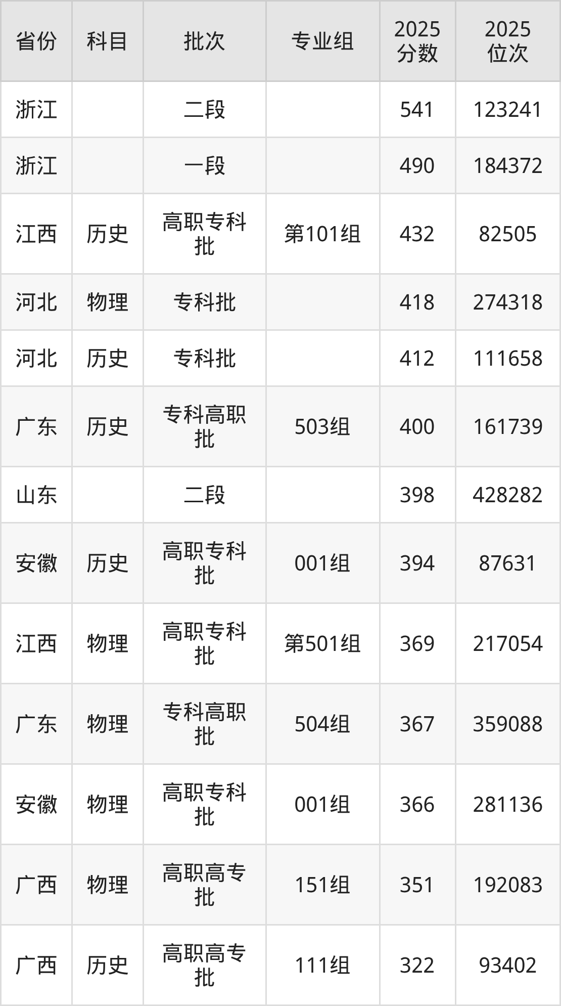 参考2025年山东省高考招录数据,按照分数线从高到低依次为大家展示淮北职业技术学院各个专业录取分数线。