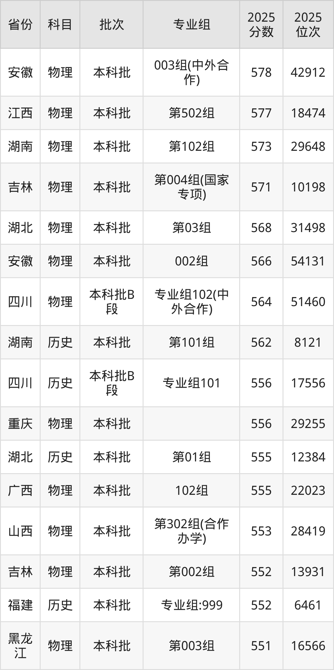 8、电气工程及其自动化(菁英班):598分、位次26150名;