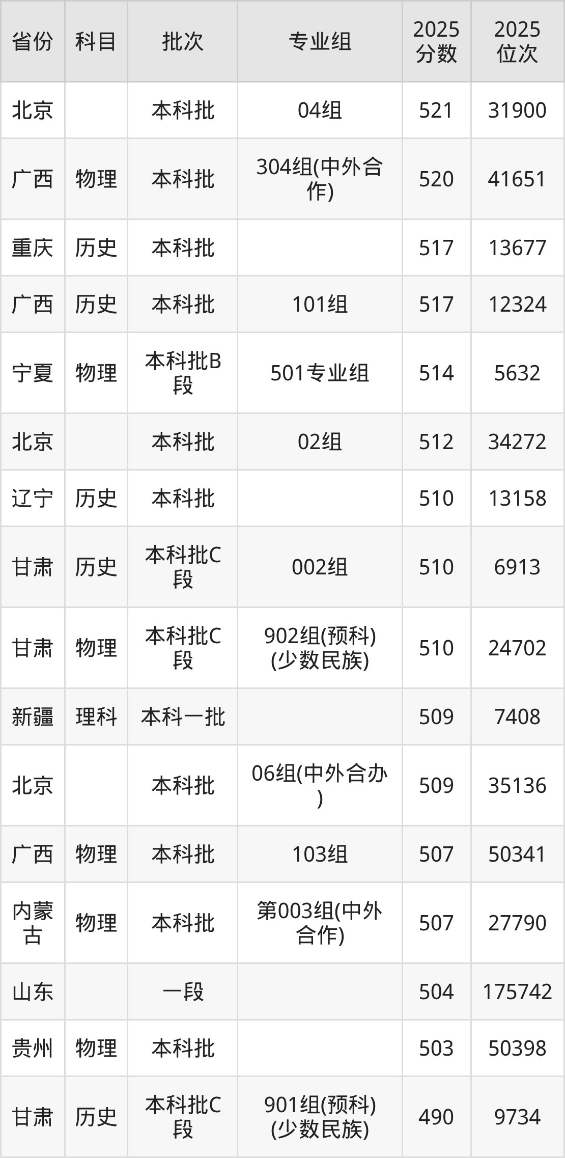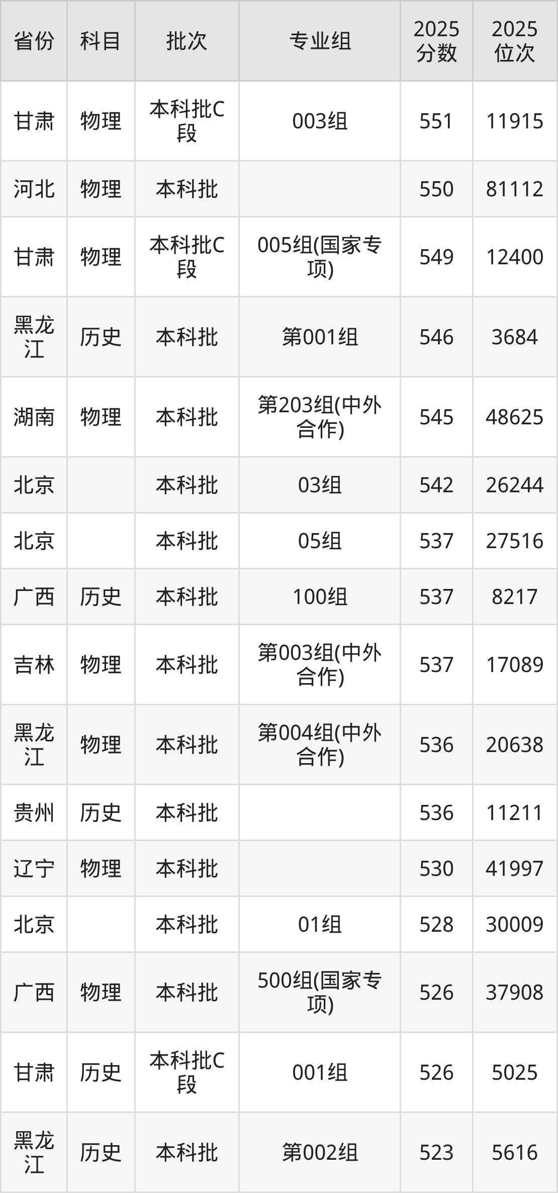 参考2025年山东省高考招录数据,按照分数线从高到低依次为大家展示北方工业大学各个专业录取分数线。