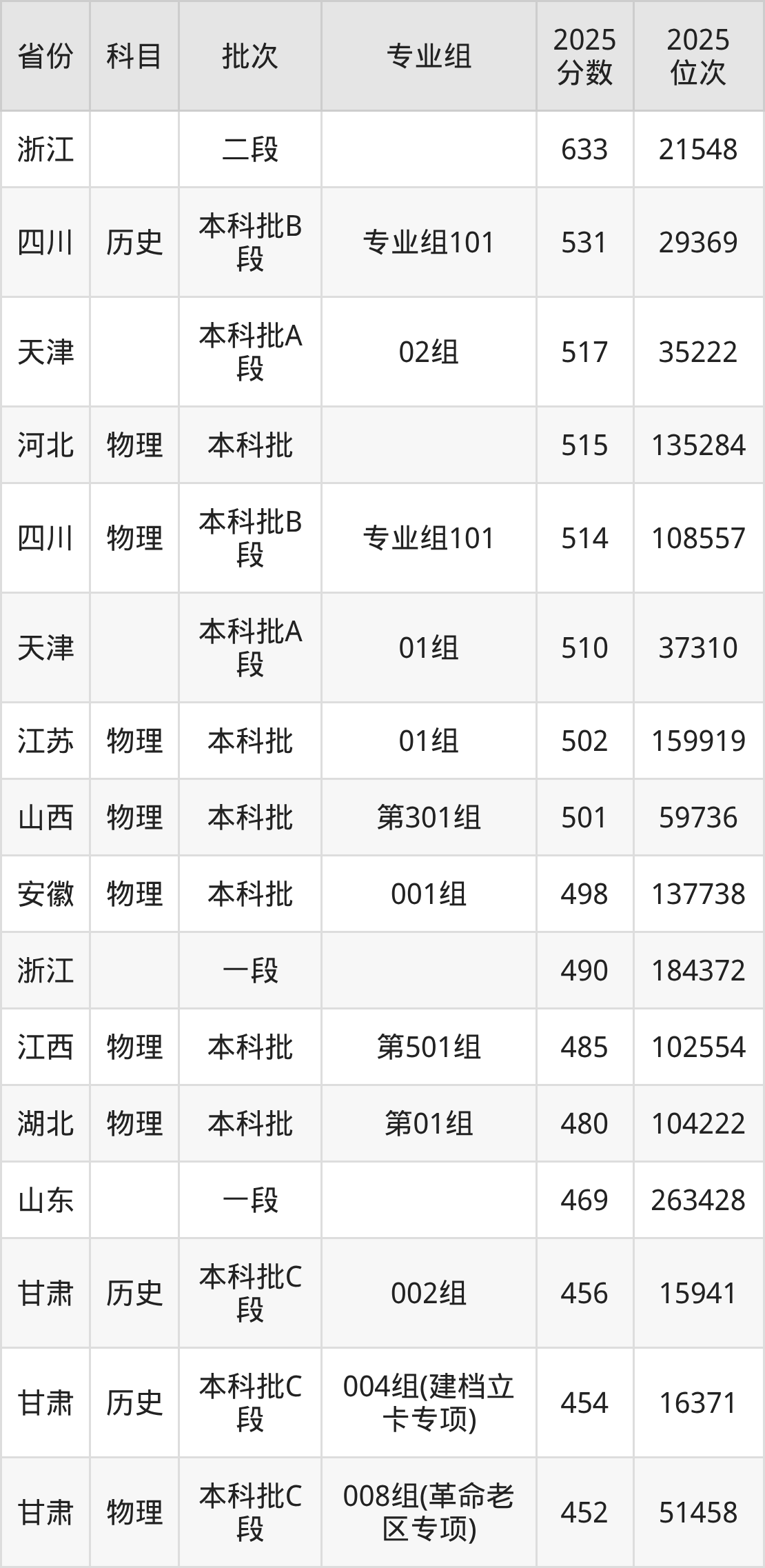 下面是2025年兰州工业学院在全国各省录取最低分数据及位次,各位考生也可作为一个参考。